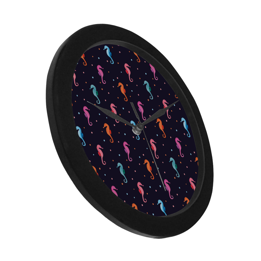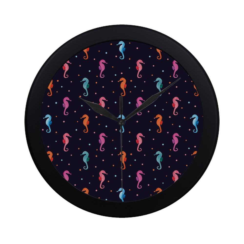 Watercolor colorful seahorse pattern Elegant Black Wall Clock