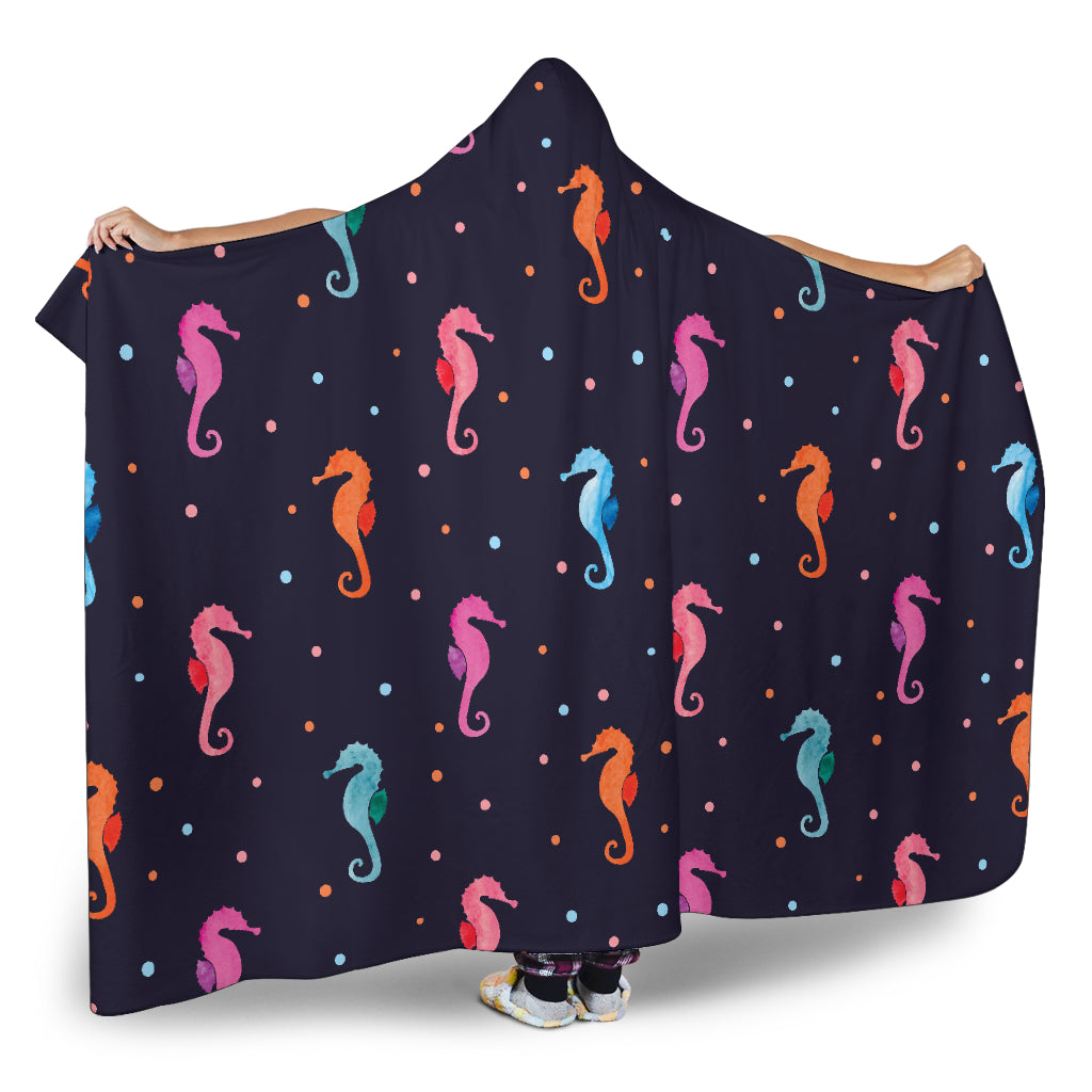 Watercolor colorful seahorse pattern Hooded Blanket are custom-made-to-order and handcrafted to the highest quality standards.