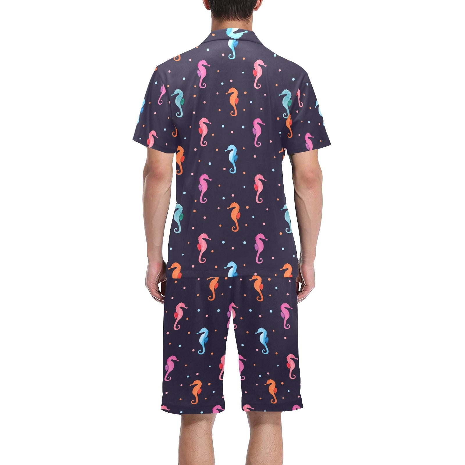 Watercolor colorful seahorse pattern Men's V-Neck Short Pajama Set