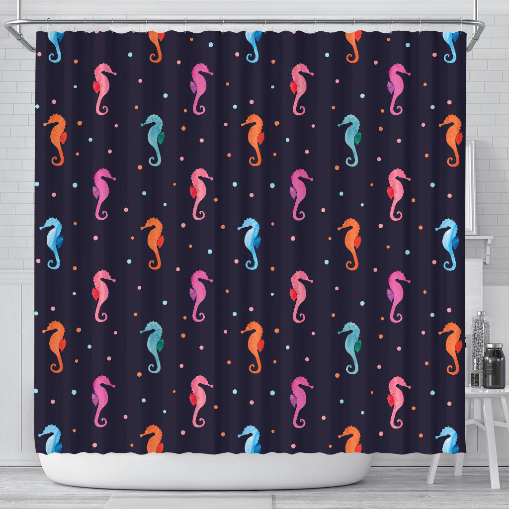 Watercolor Colorful Seahorse Pattern Shower Curtain Fulfilled In US