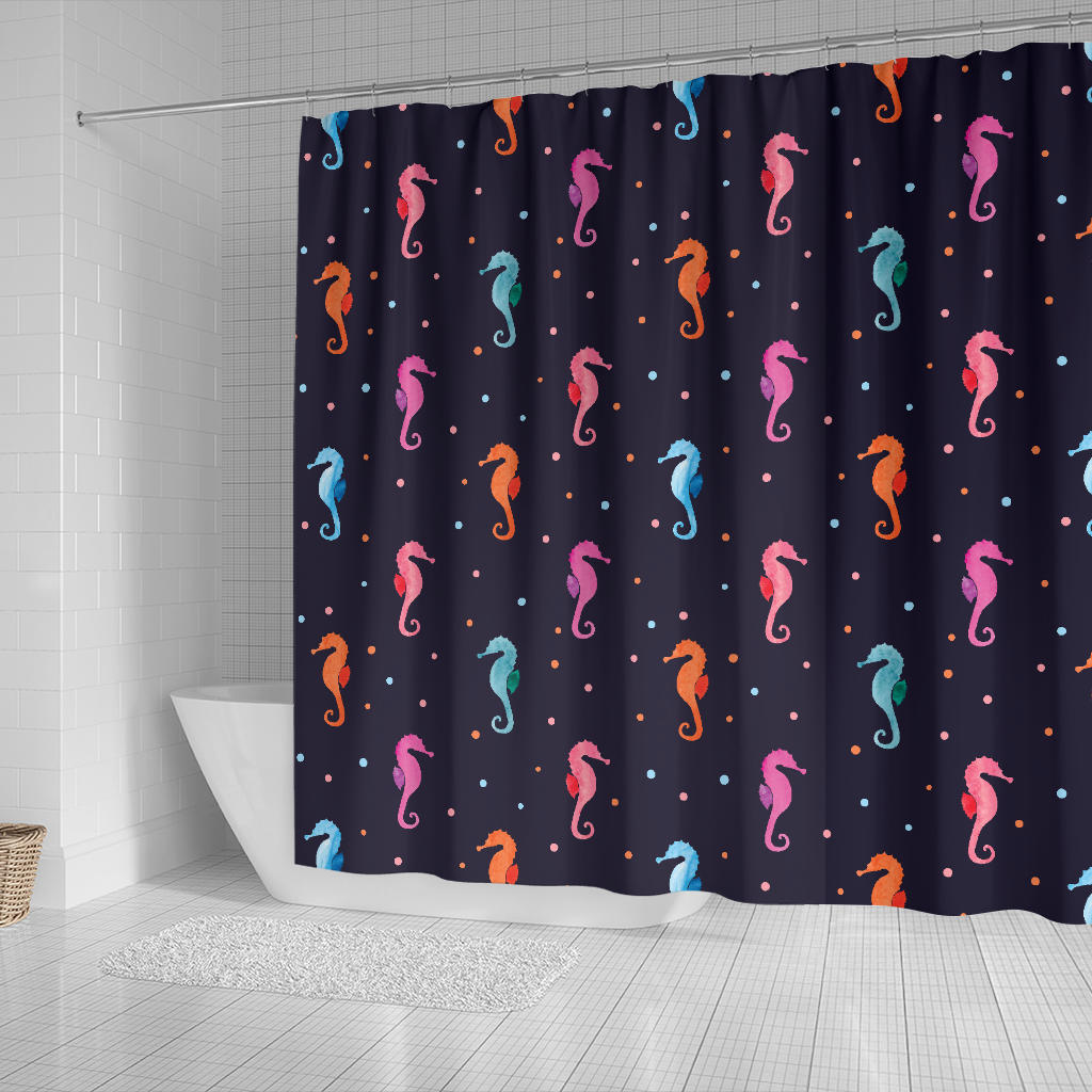 Watercolor colorful seahorse pattern Shower Curtain is a uniqued design and limited item. It made to order, hand printed, and sewn with love in our factory.