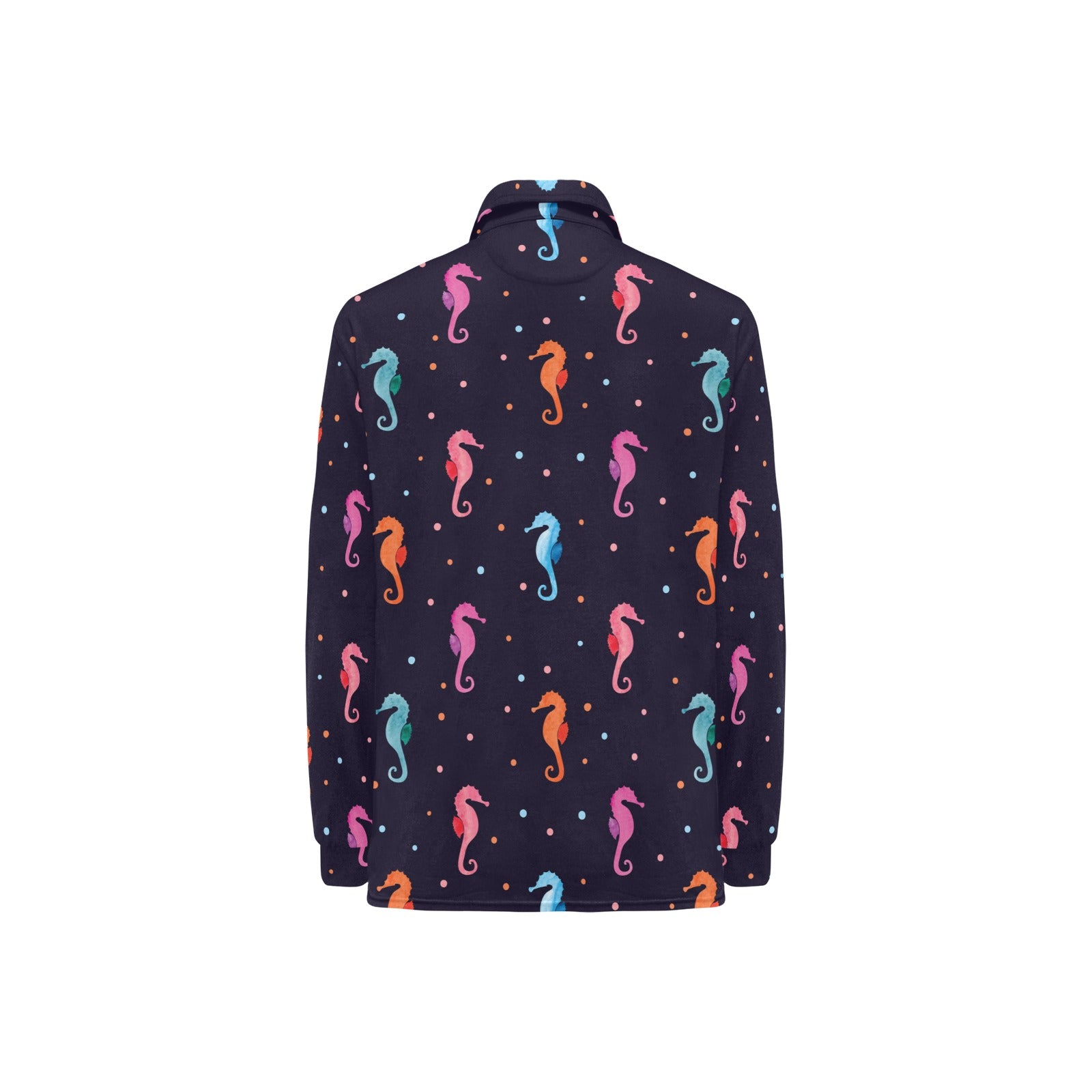 Watercolor colorful seahorse pattern Women's Long Sleeve Polo Shirt