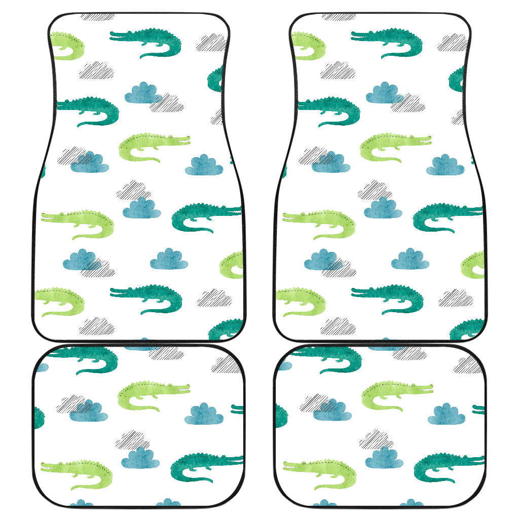 Watercolor Crocodile Pattern Front And Back Car Mats