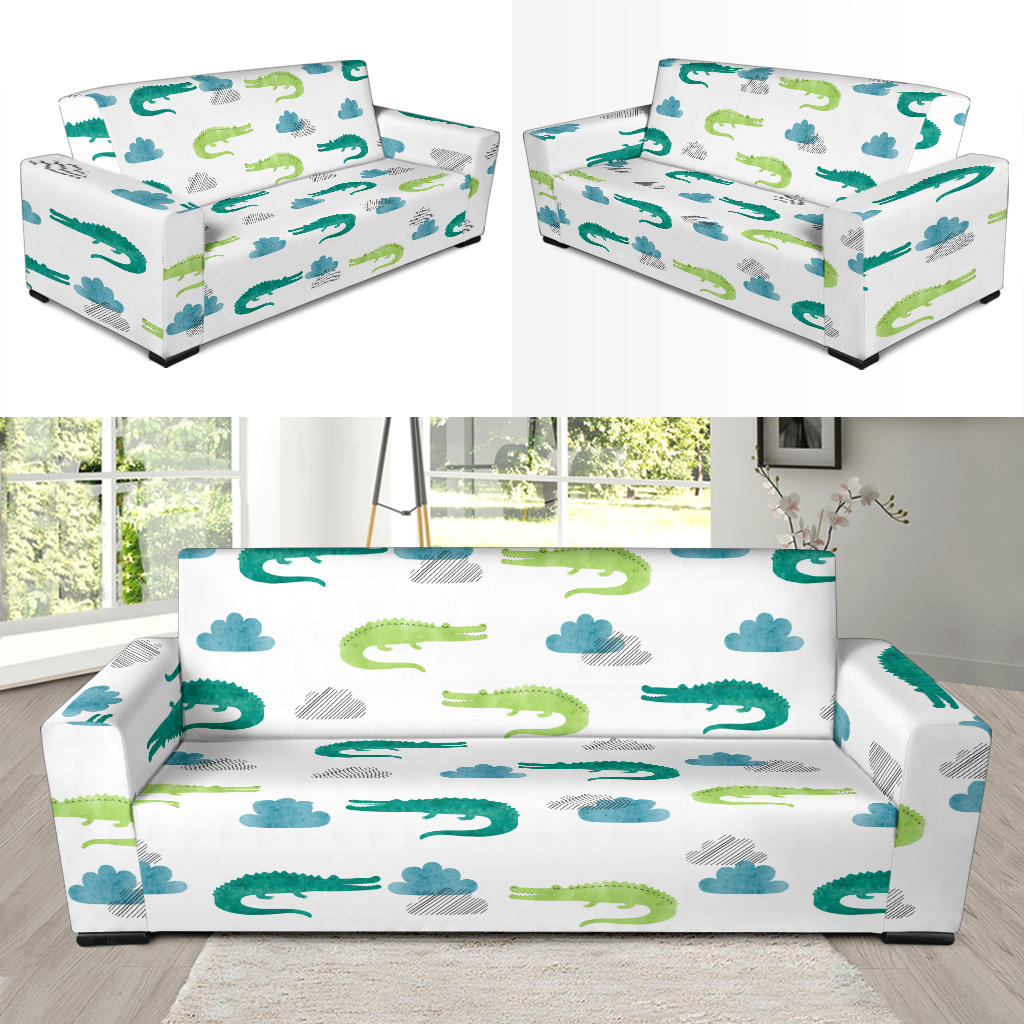 watercolor crocodile pattern Sofa Slipcover is a uniqued design and limited item. It made to order, hand printed, and sewn with love in our factory.