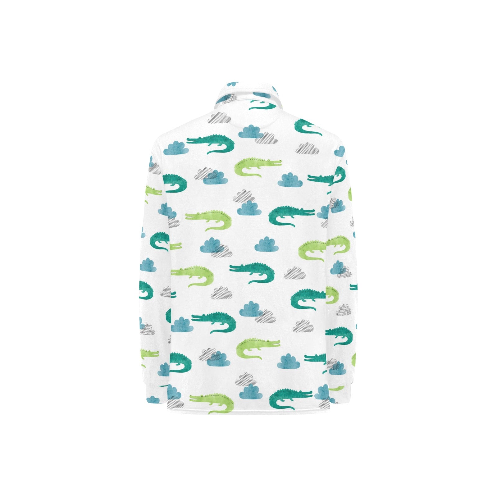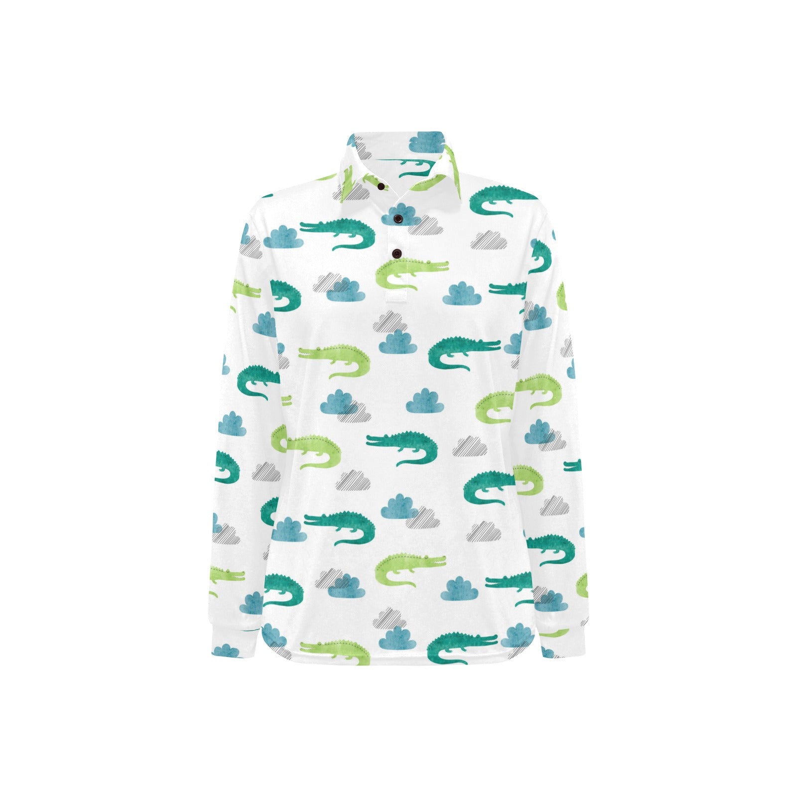 watercolor crocodile pattern Women's Long Sleeve Polo Shirt