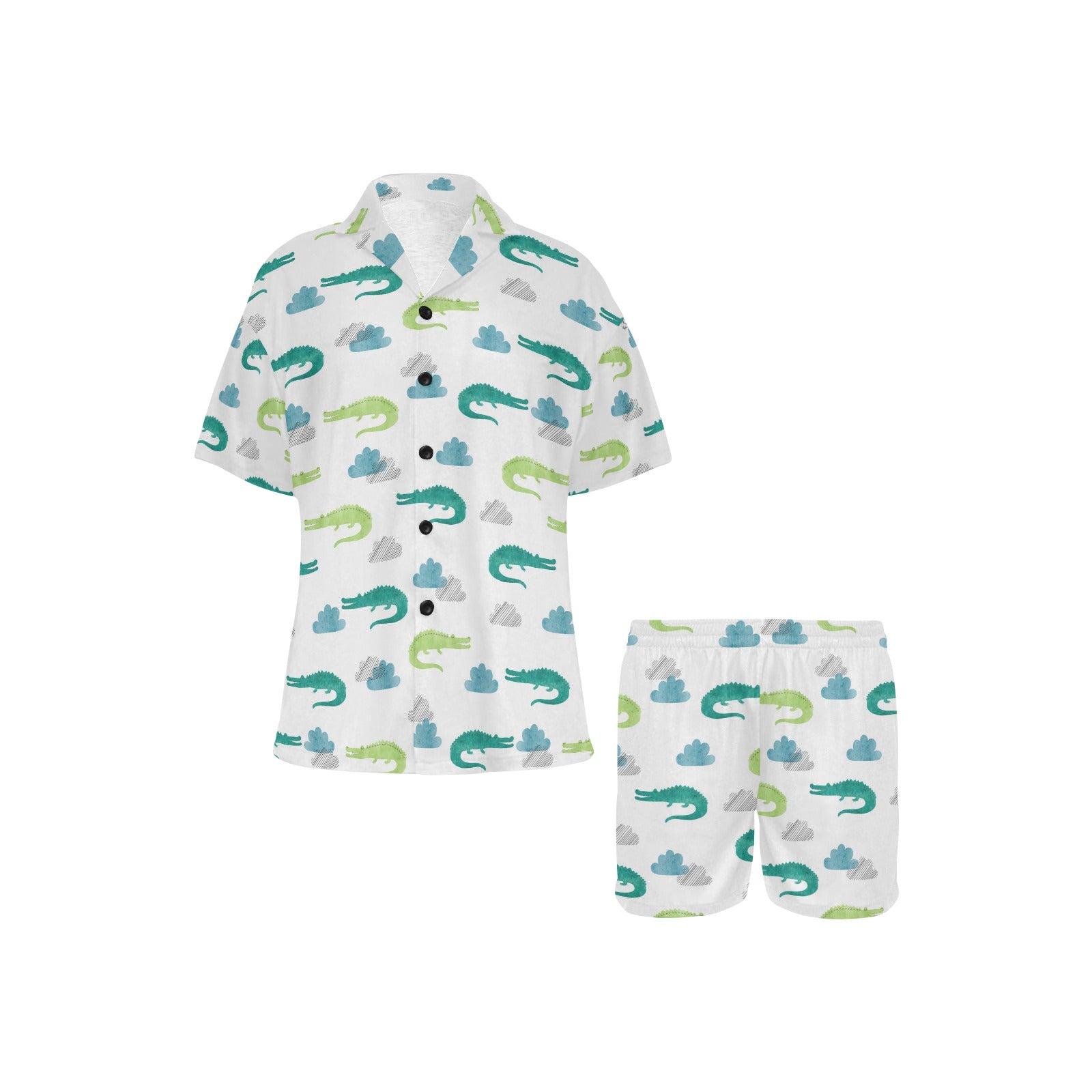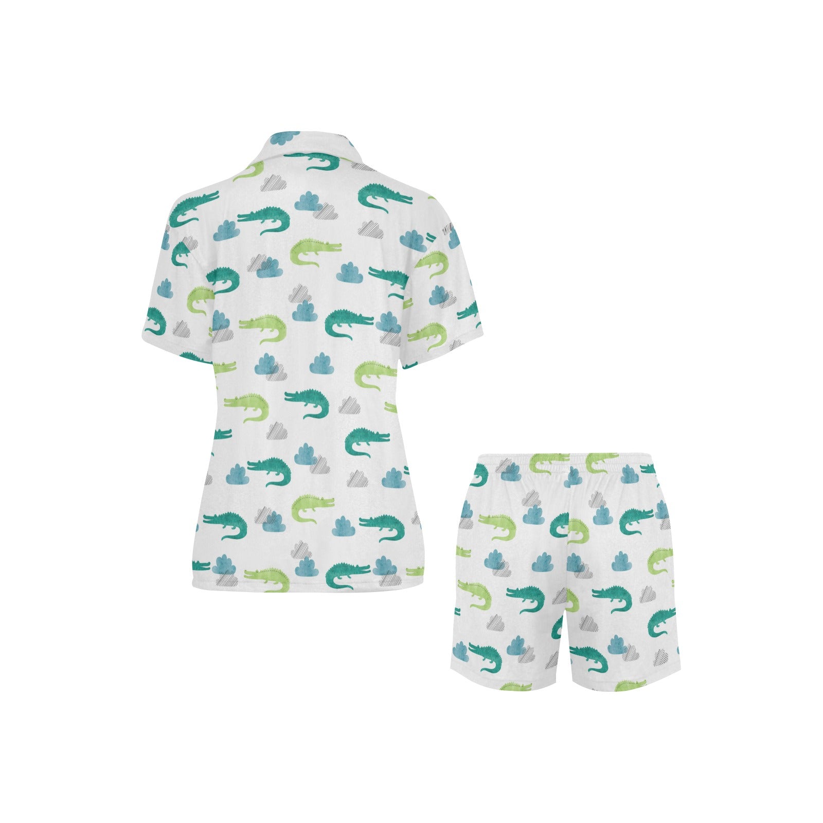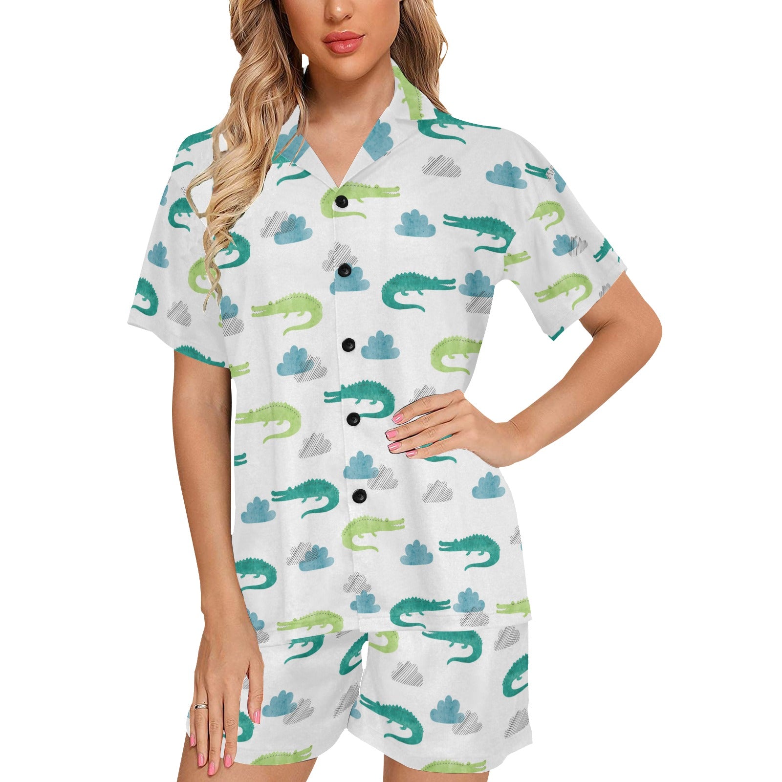watercolor crocodile pattern Women's V-Neck Short Pajama Set