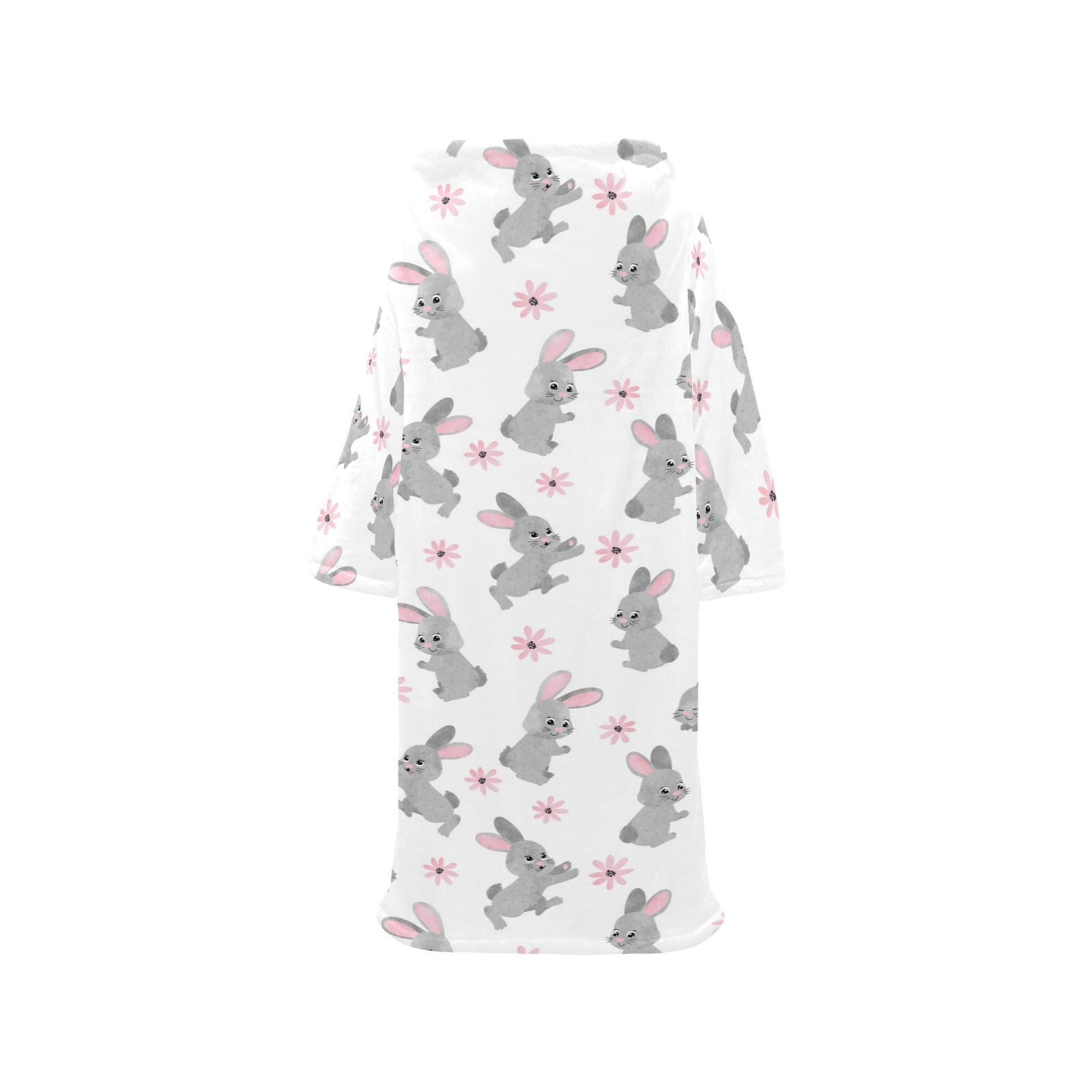 Watercolor cute rabbit pattern Blanket Robe with Sleeves