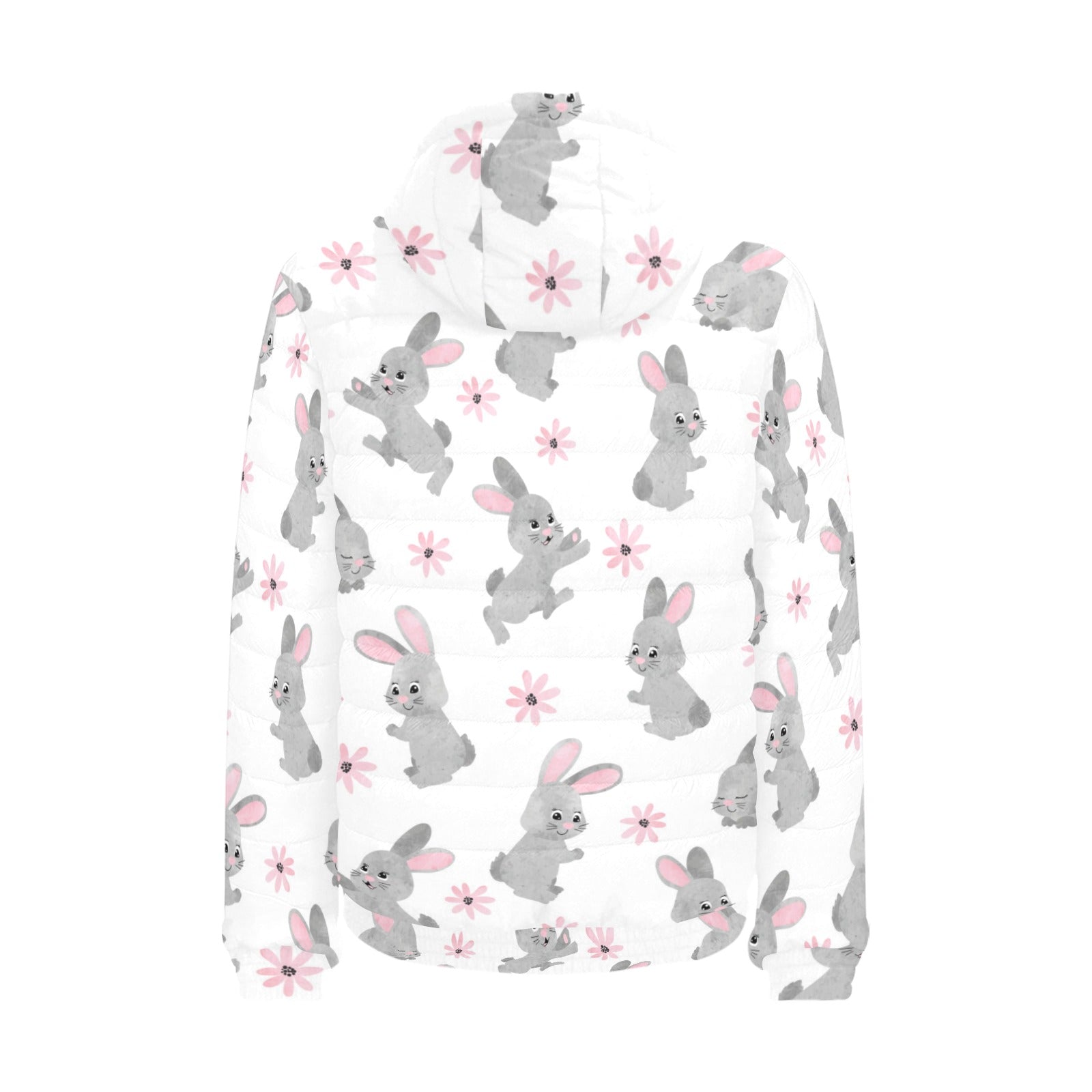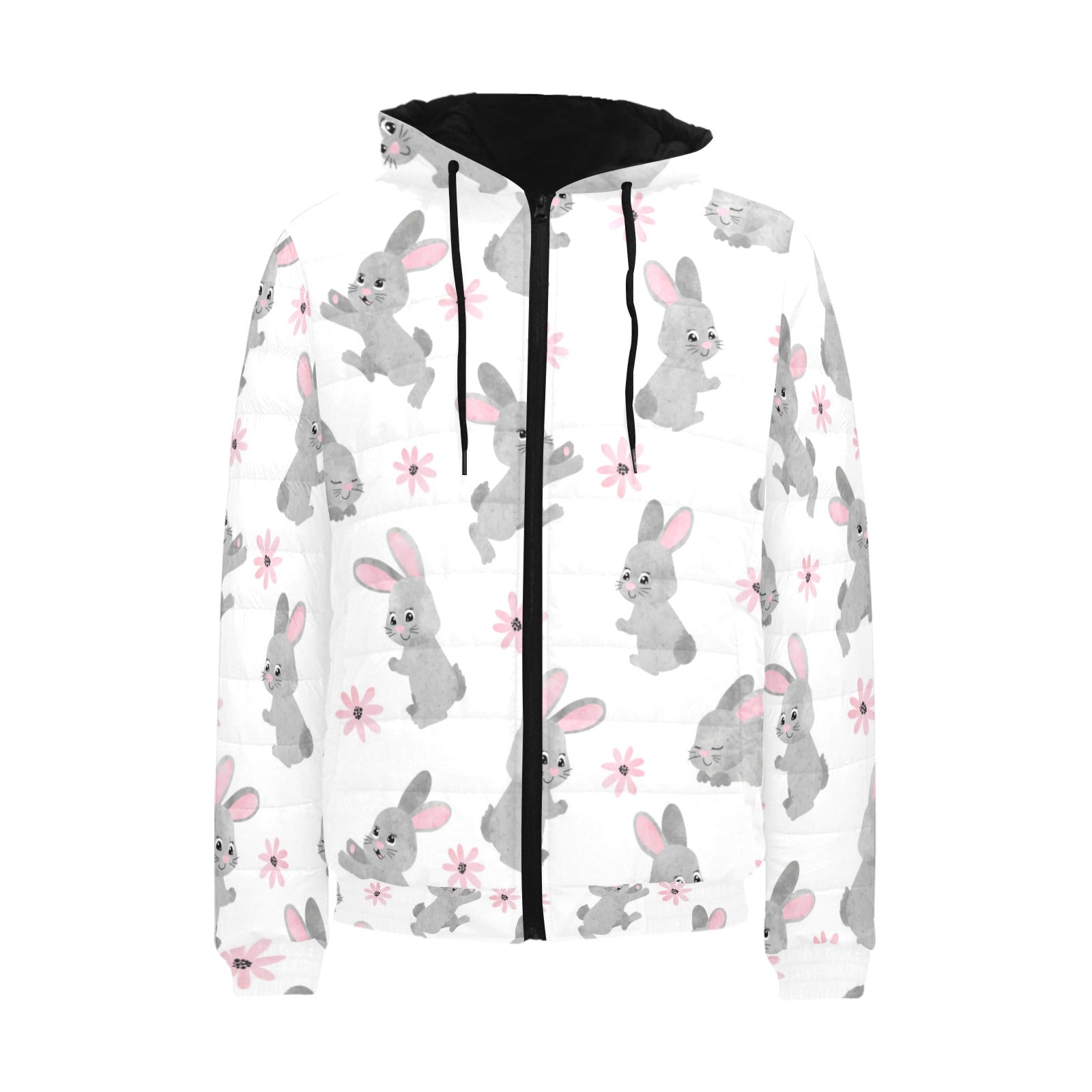 Watercolor cute rabbit pattern Men's Padded Hooded Jacket