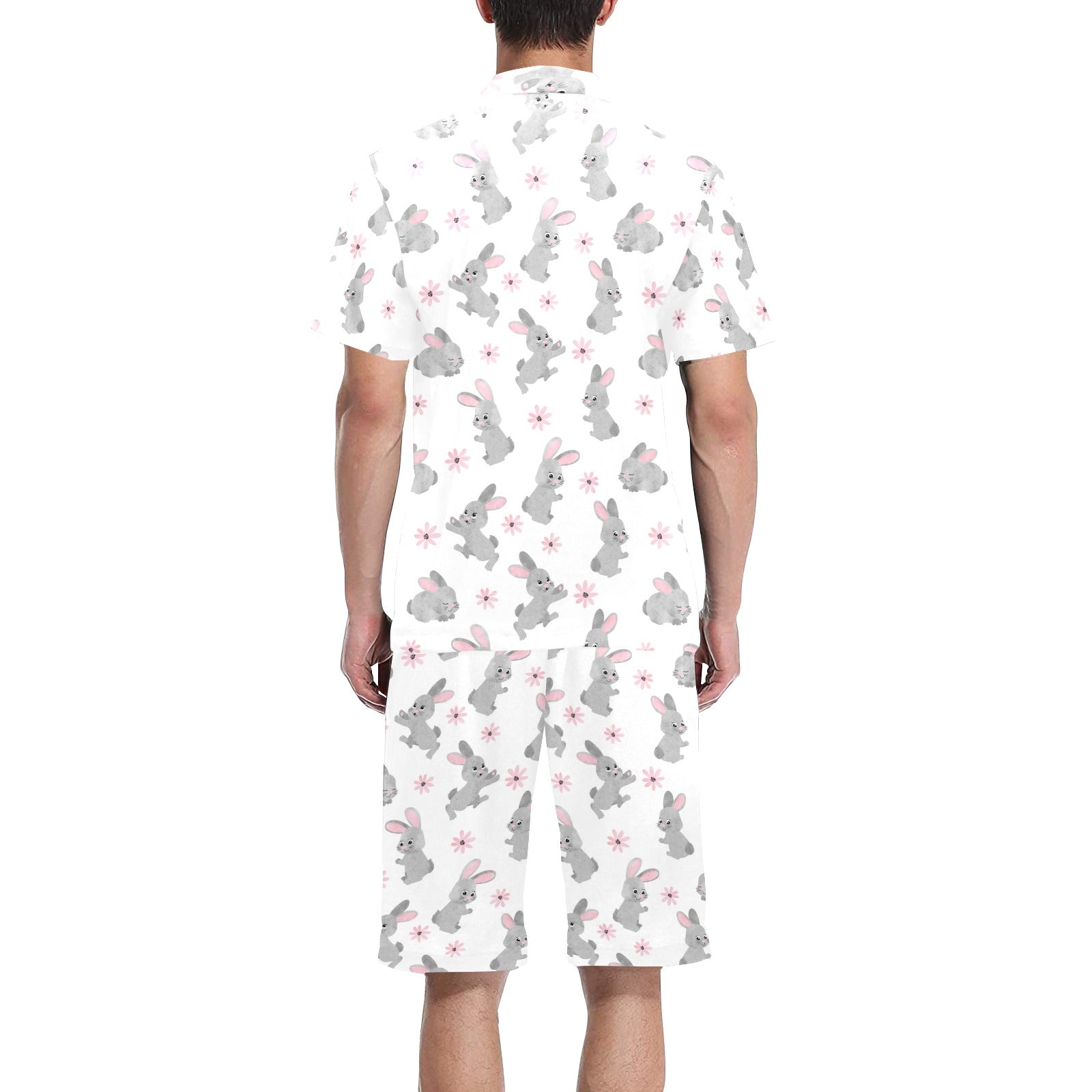 Watercolor cute rabbit pattern Men's V-Neck Short Pajama Set