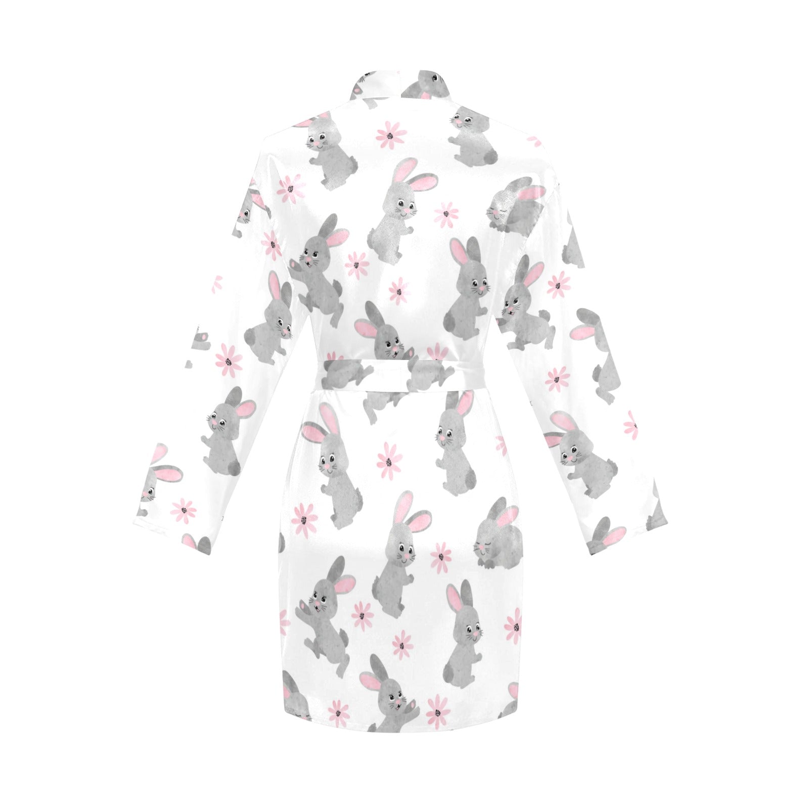 Watercolor cute rabbit pattern Women's Long Sleeve Belted Night Robe