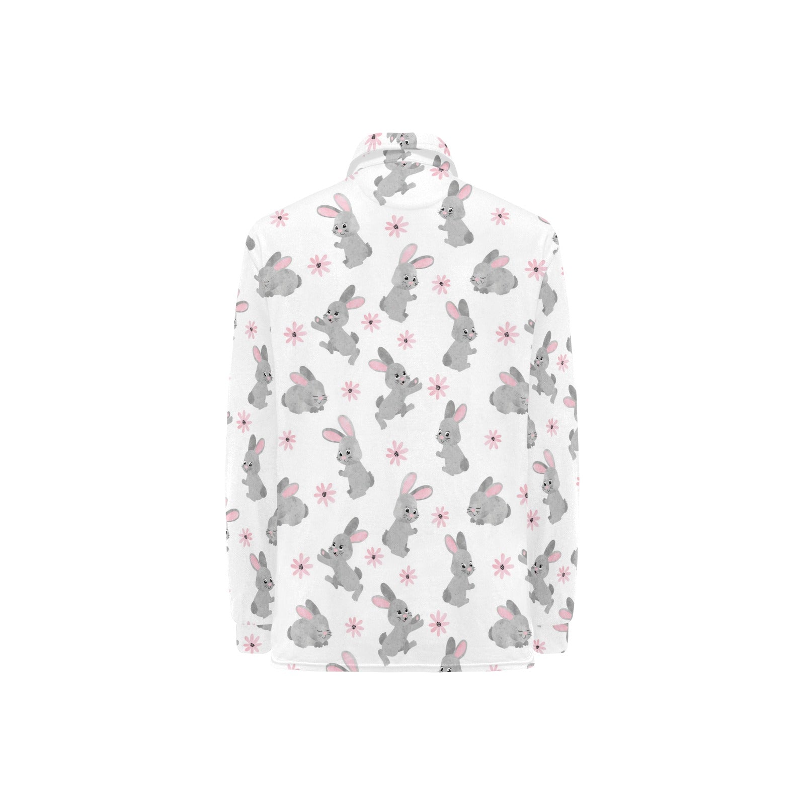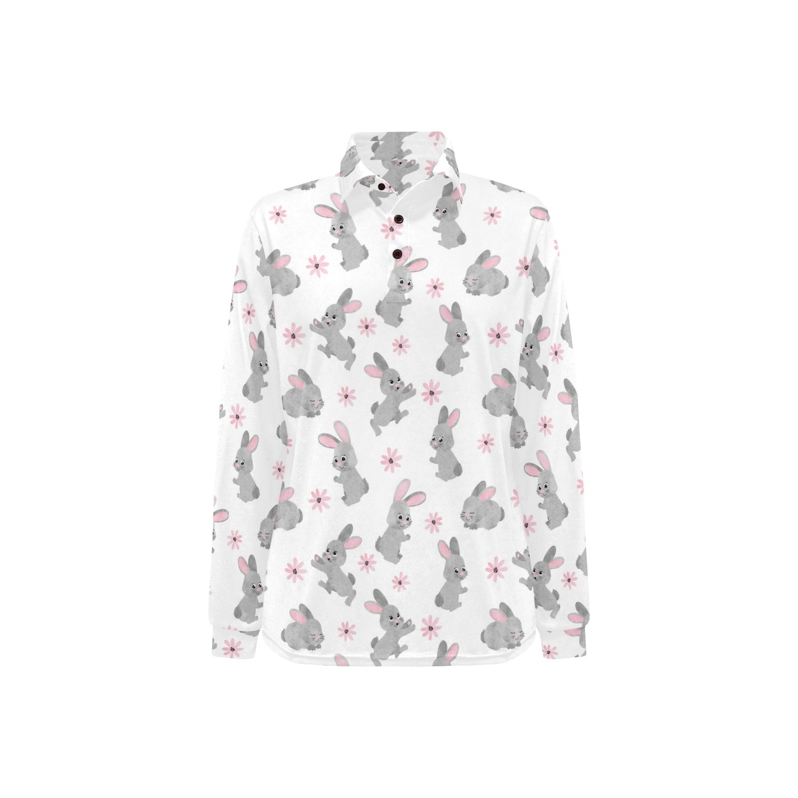 Watercolor cute rabbit pattern Women's Long Sleeve Polo Shirt