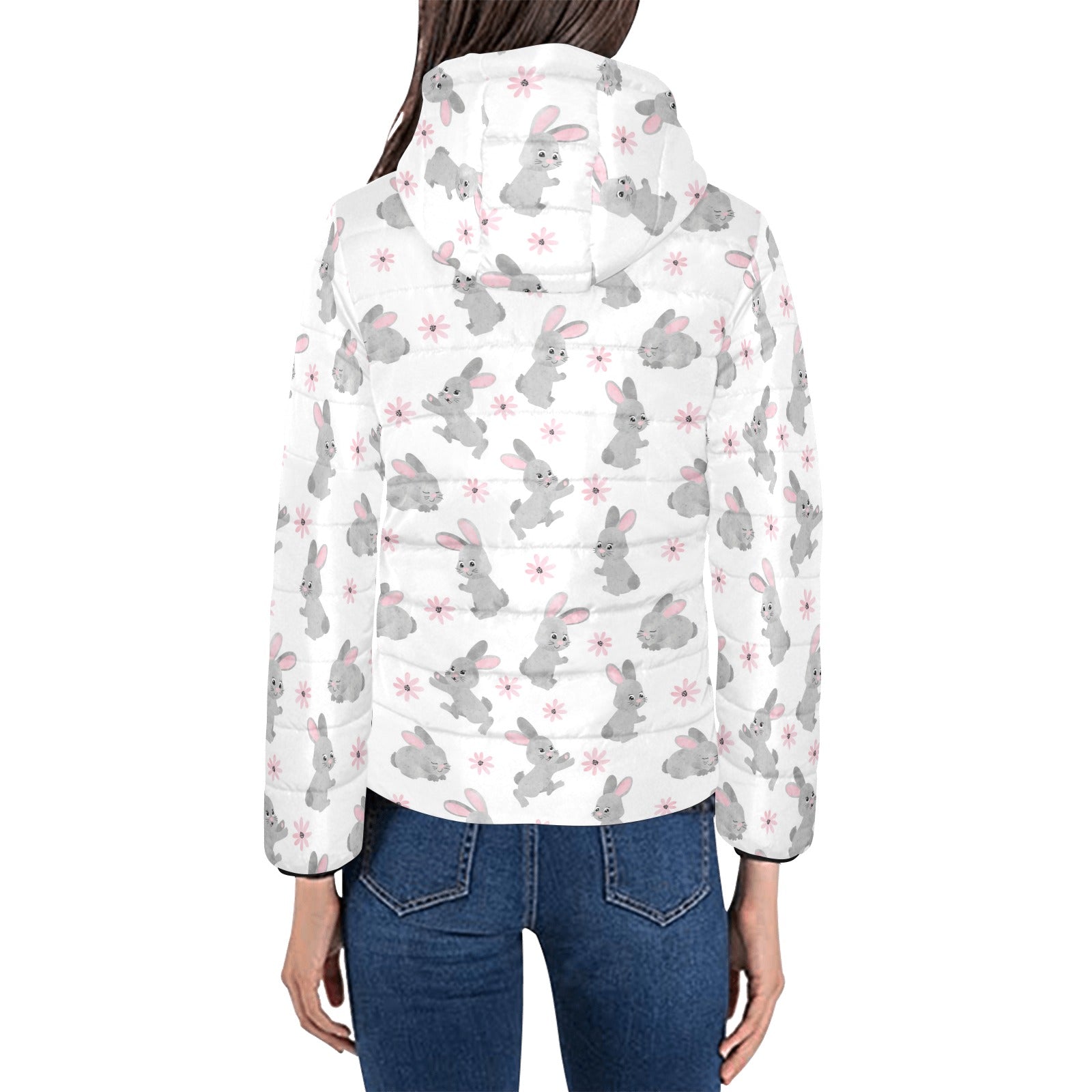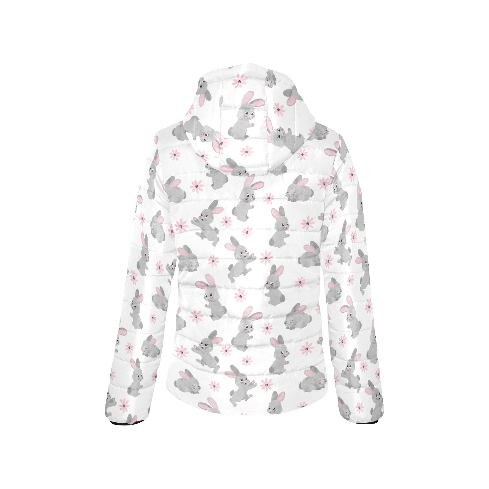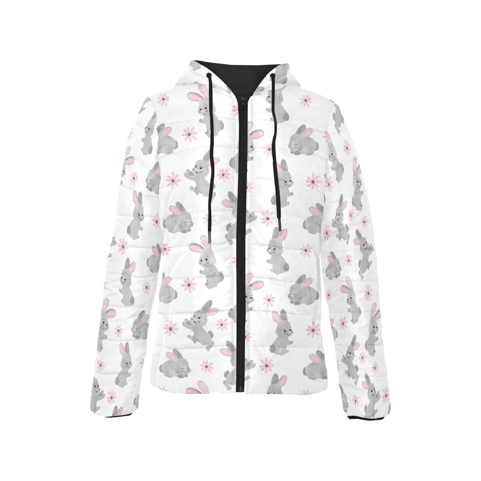 Watercolor cute rabbit pattern Women's Padded Hooded Jacket