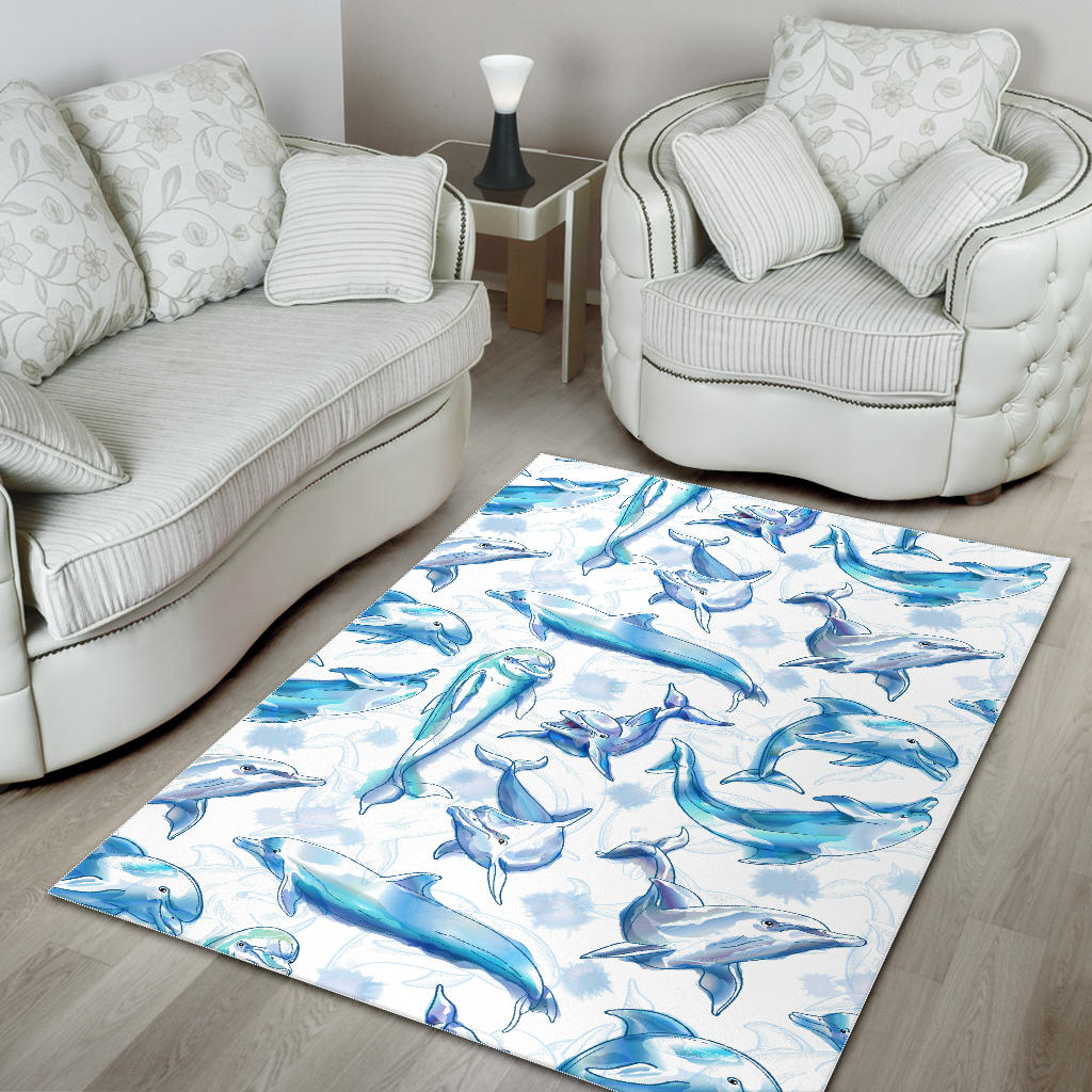 Watercolor dolphin pattern Area Rug is a uniqued design and limited item. It made to order, hand printed, and sewn with love in our factory.