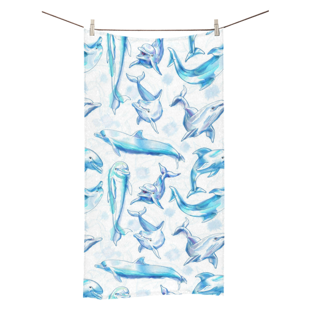 Watercolor dolphin pattern Bath Towel 30"x56" is a uniqued design and limited item. It made to order, hand printed, and sewn with love in our factory.