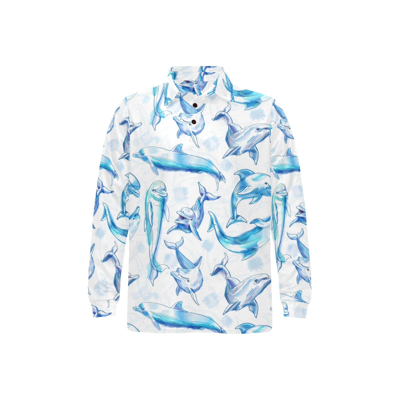 Watercolor dolphin pattern Men's Long Sleeve Polo Shirt