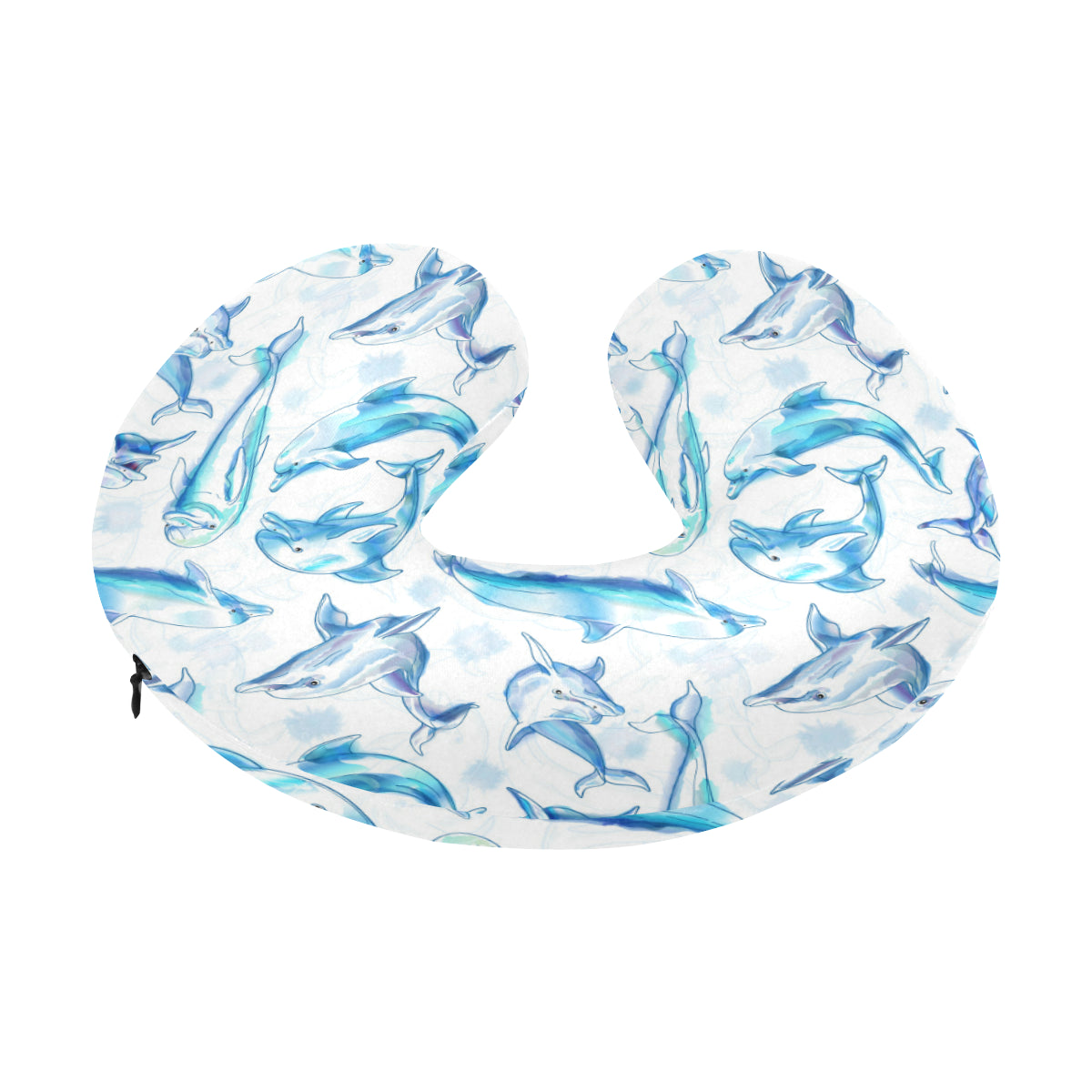Watercolor dolphin pattern U-Shaped Travel Neck Pillow