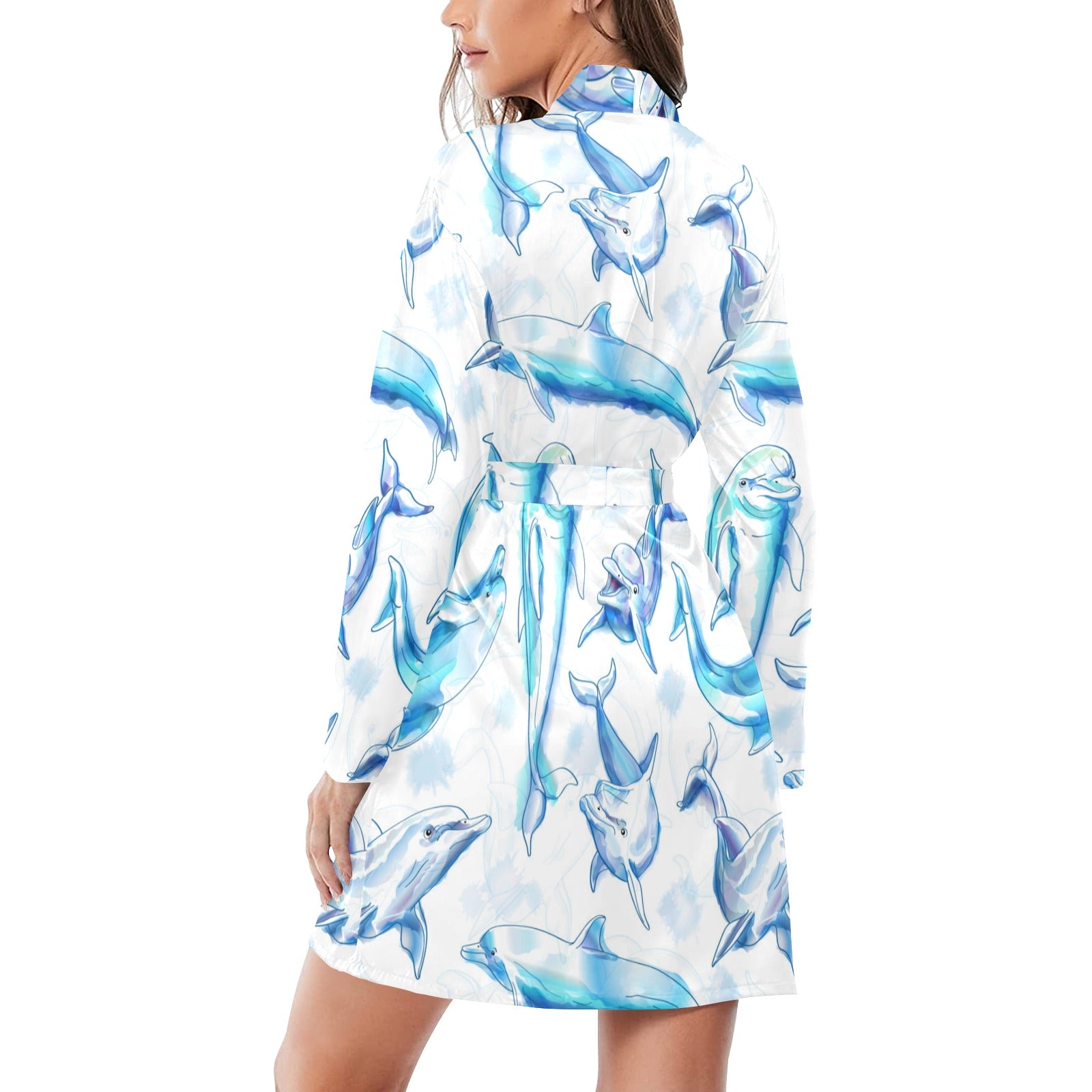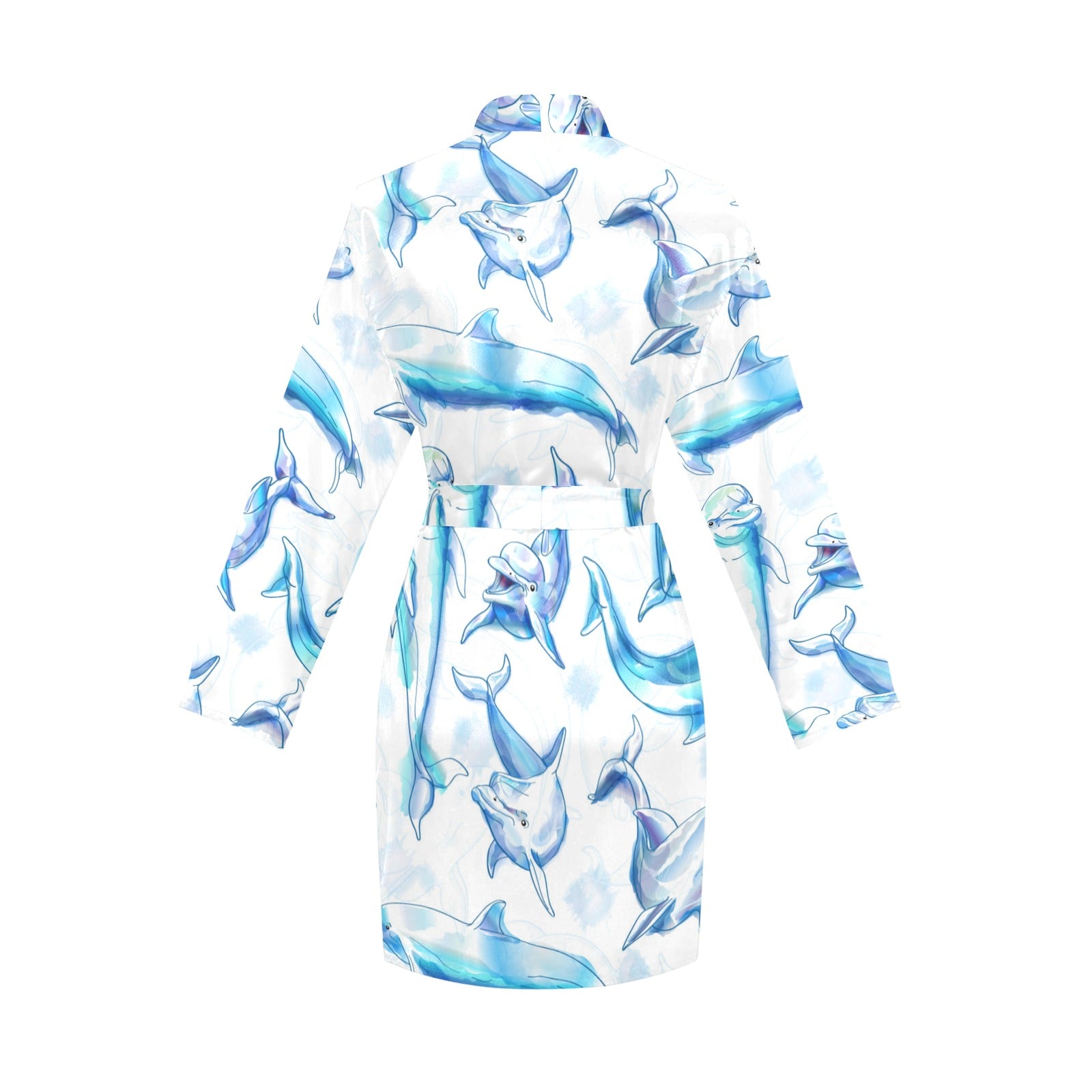 Watercolor dolphin pattern Women's Long Sleeve Belted Night Robe