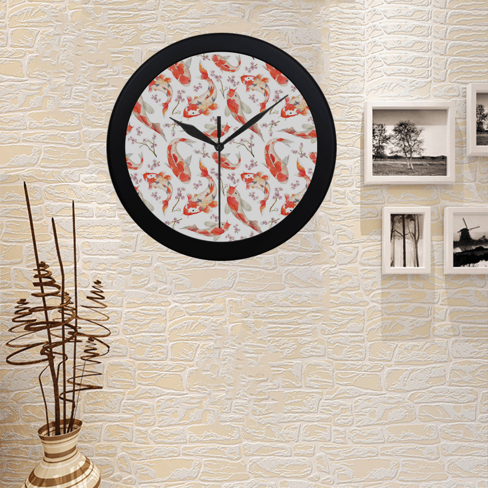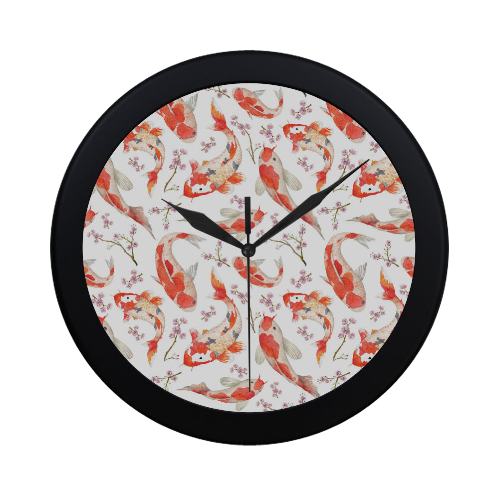 Watercolor Koi Fish Carp Fish pattern Elegant Black Wall Clock