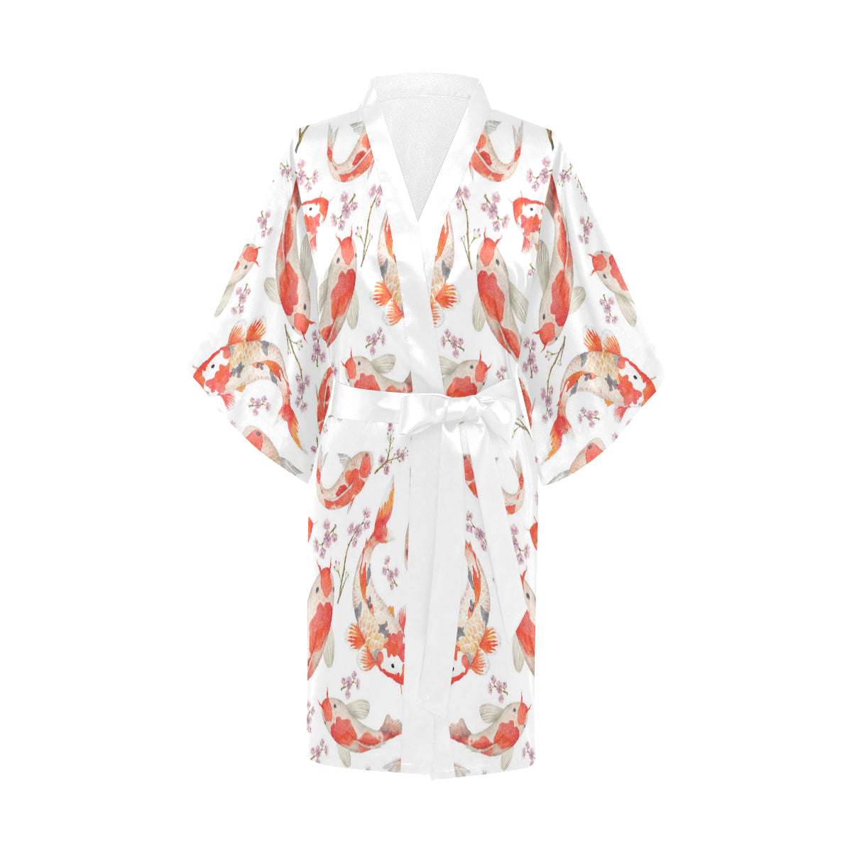 Watercolor fancy carp pattern Women's Short Kimono Robe is a uniqued design and limited item. It made to order, hand printed, and sewn with love in our factory.