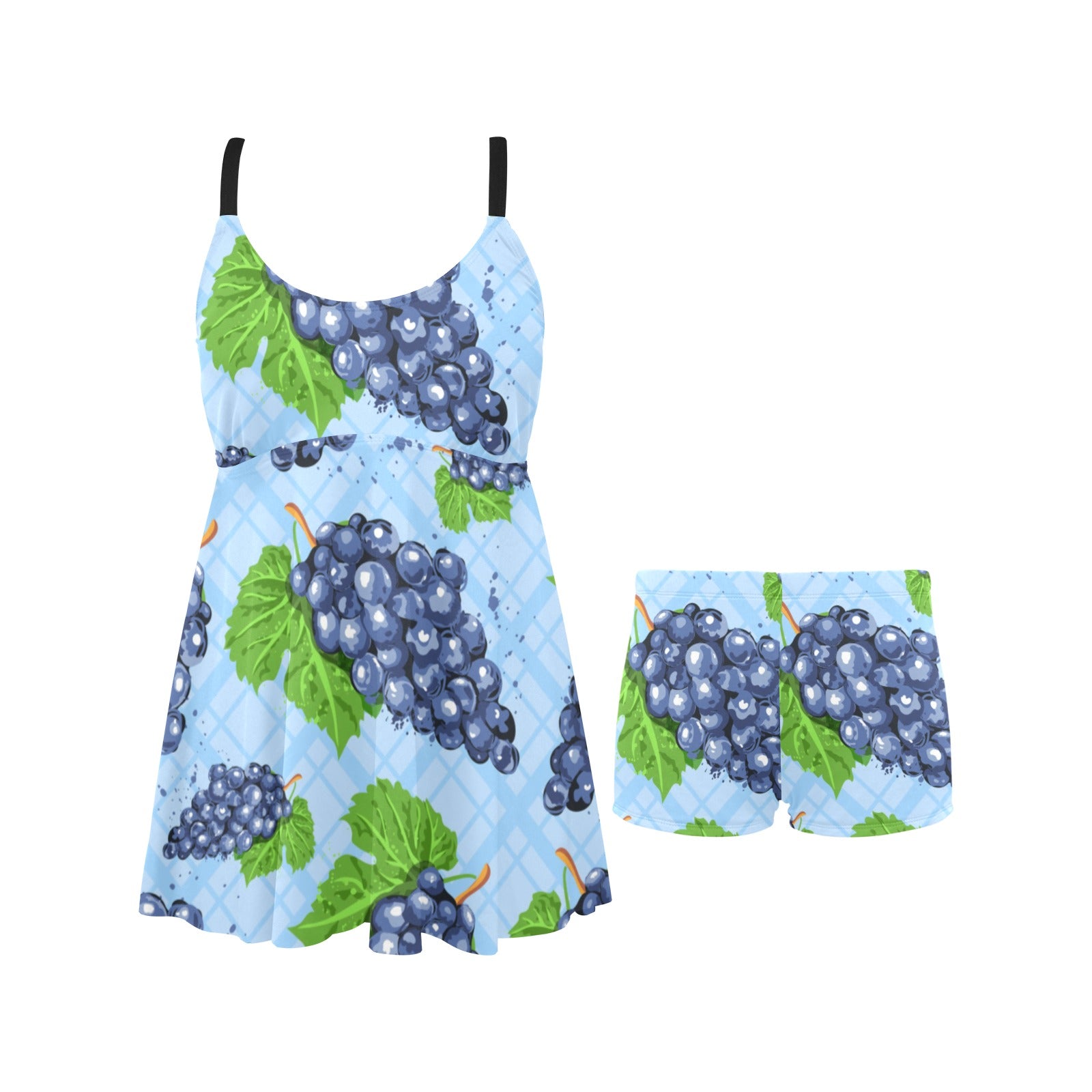 Watercolor grape pattern Chest Sexy Pleated Two Piece Swim Dress