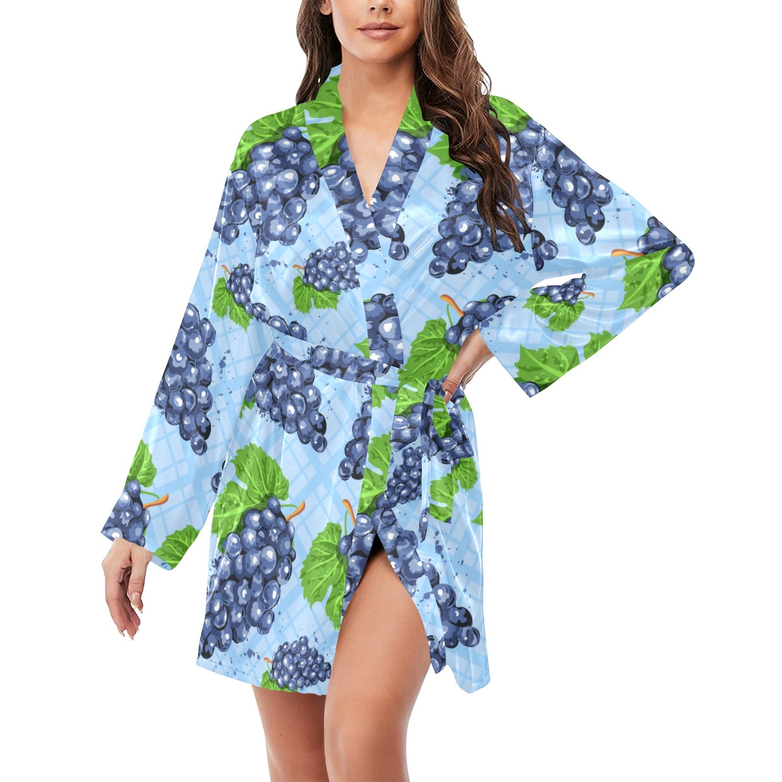 Watercolor grape pattern Women's Long Sleeve Belted Night Robe