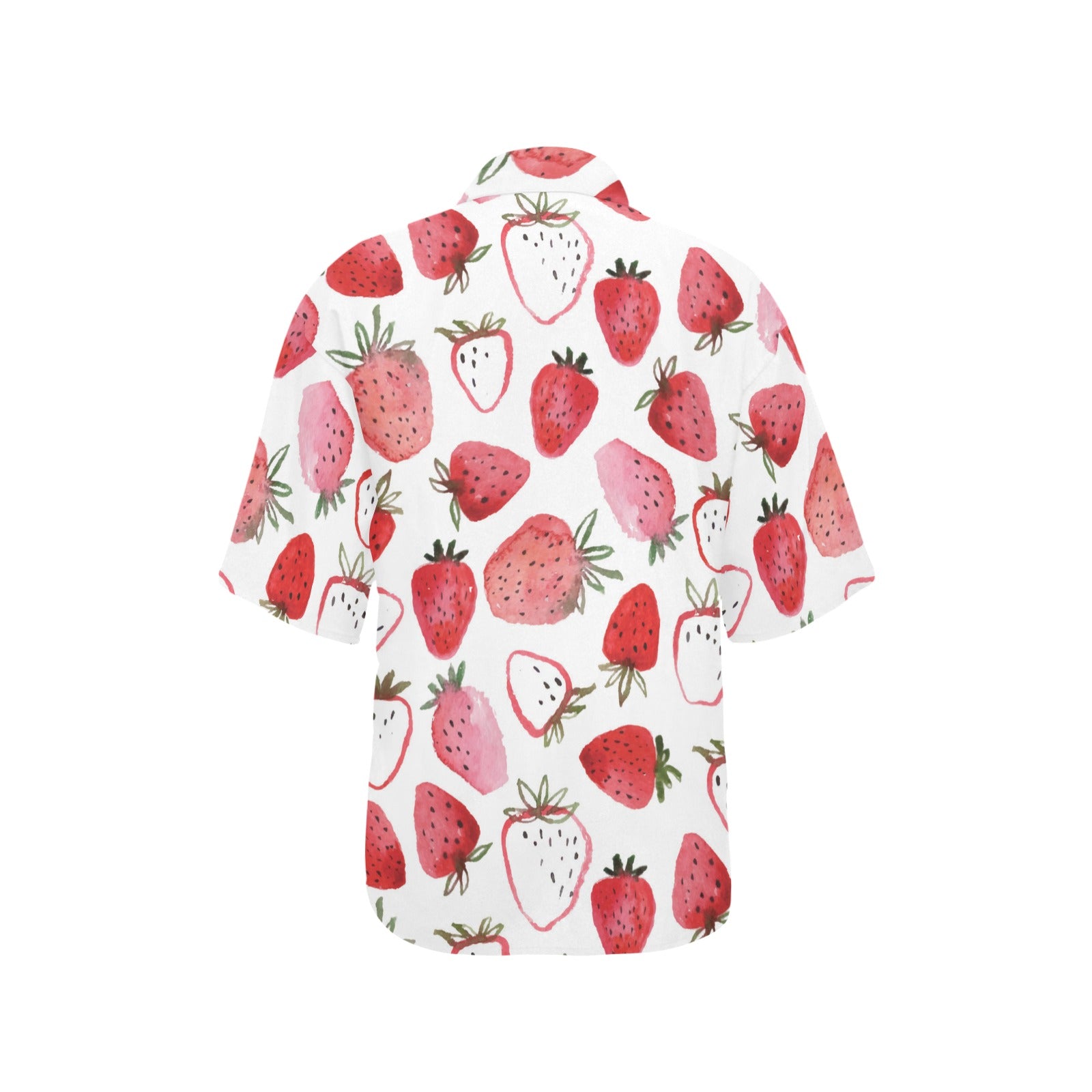 watercolor hand drawn beautiful strawberry pattern Women's All Over Print Hawaiian Shirt