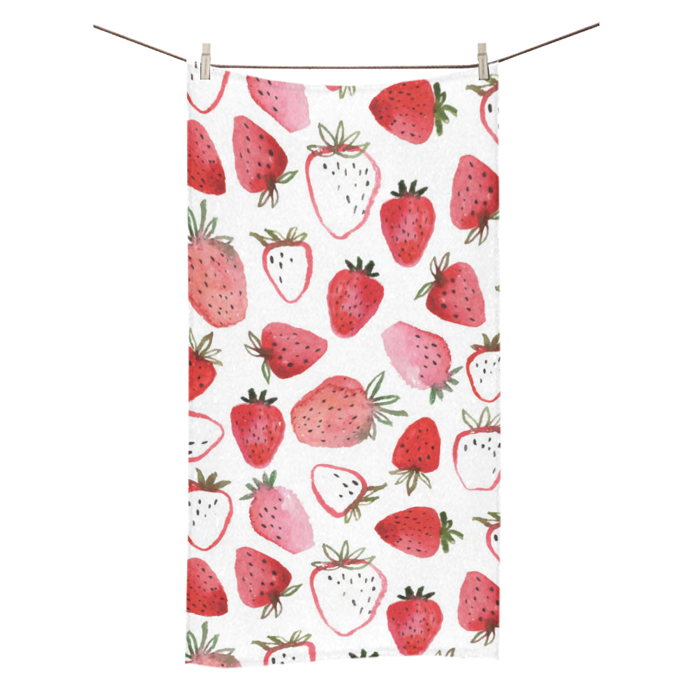watercolor hand drawn beautiful strawberry pattern Bath Towel 30"x56" is a uniqued design and limited item. It made to order, hand printed, and sewn with love in our factory.