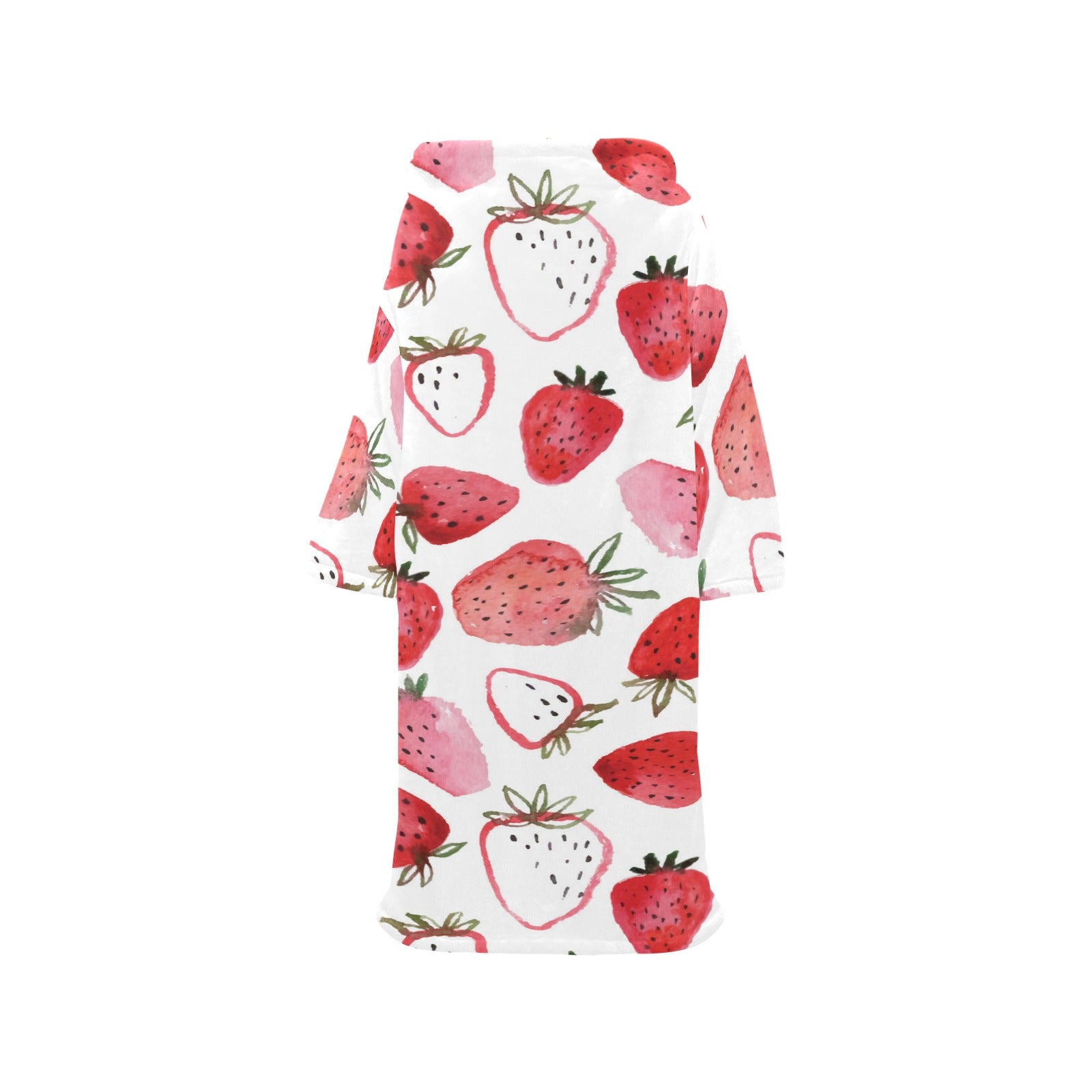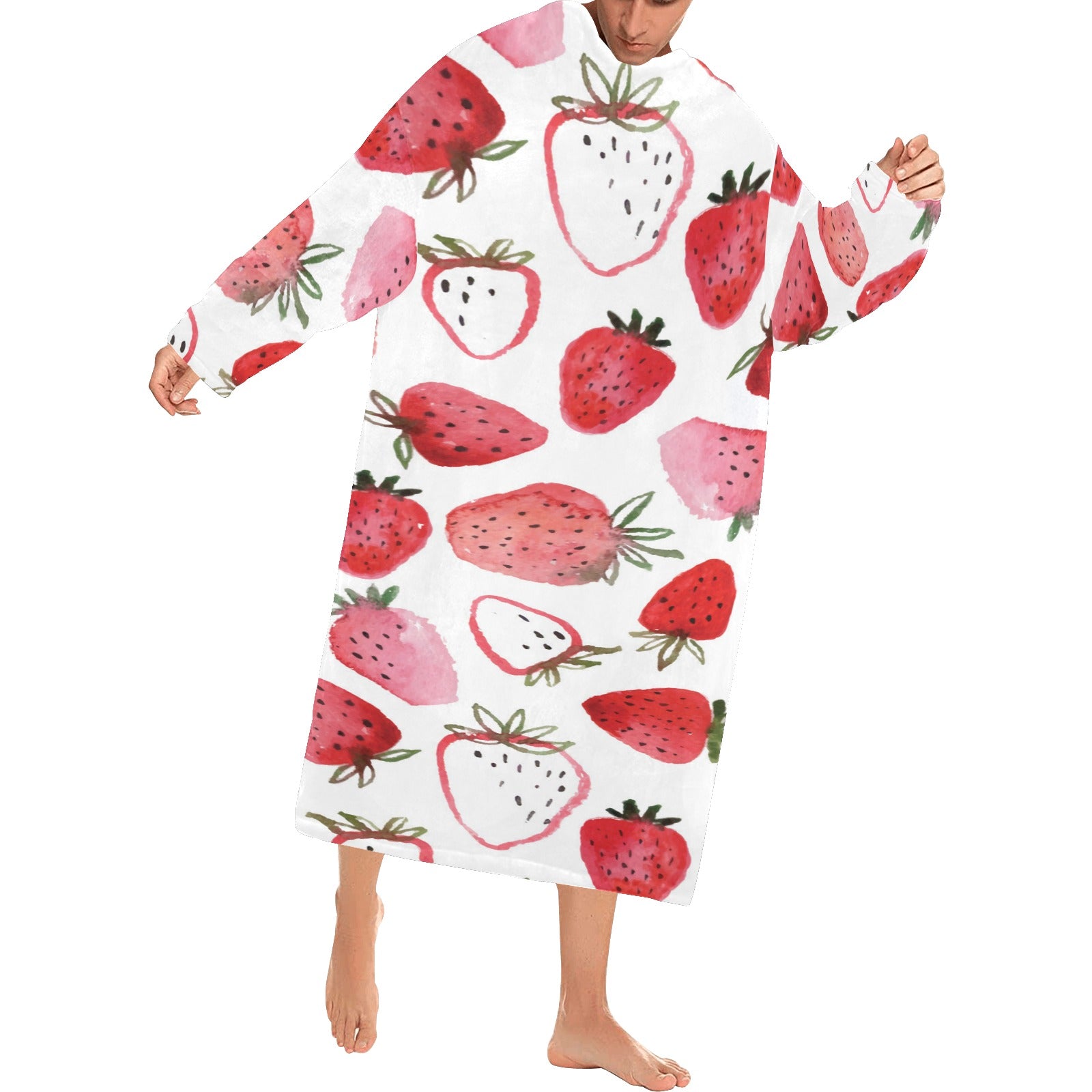 watercolor hand drawn beautiful strawberry pattern Blanket Robe with Sleeves