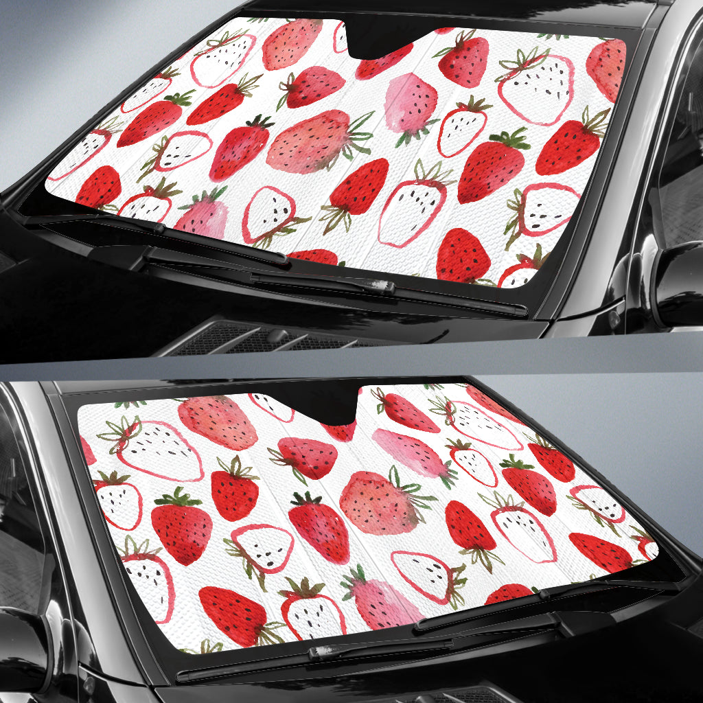 Watercolor Hand Drawn Beautiful Strawberry Pattern Car Sun Shade