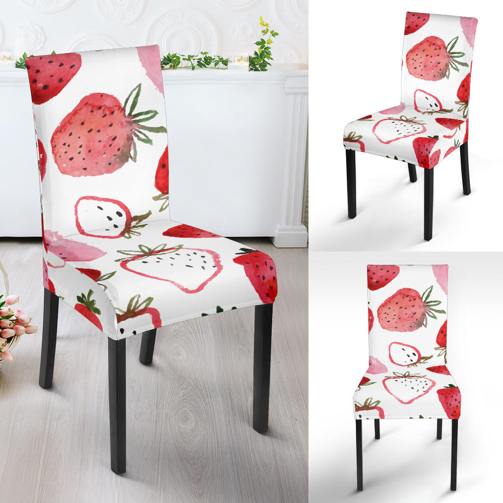 Watercolor Hand Drawn Beautiful Strawberry Pattern Dining Chair Slipcover