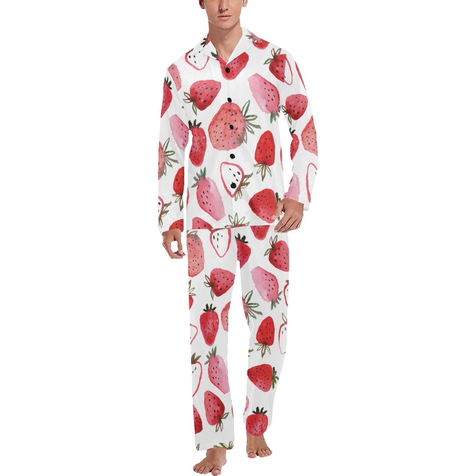 watercolor hand drawn beautiful strawberry pattern Men's Long Pajama Set