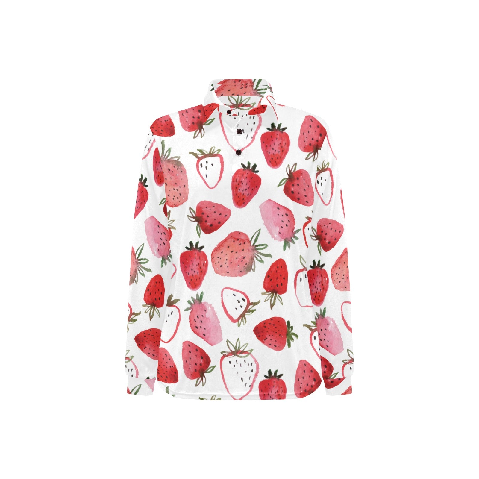 watercolor hand drawn beautiful strawberry pattern Women's Long Sleeve Polo Shirt