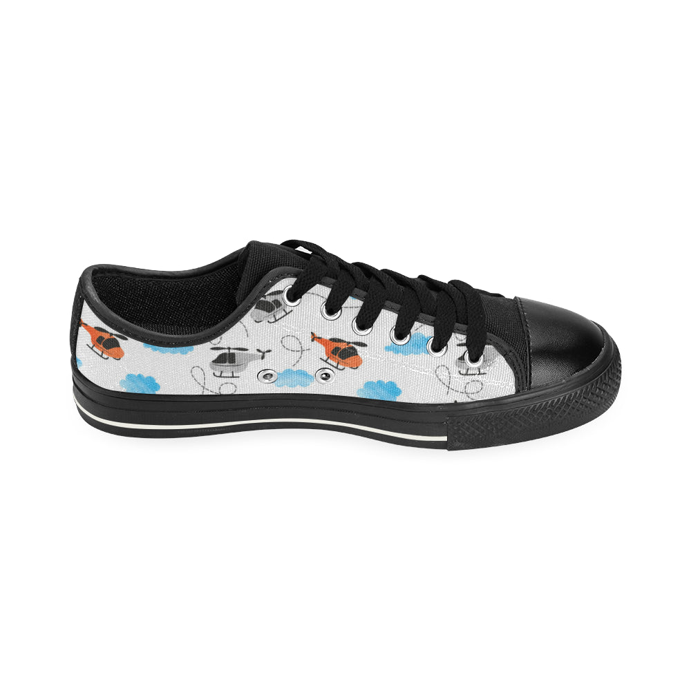 Watercolor helicopter cloud pattern Men's Low Top Canvas Shoes Black
