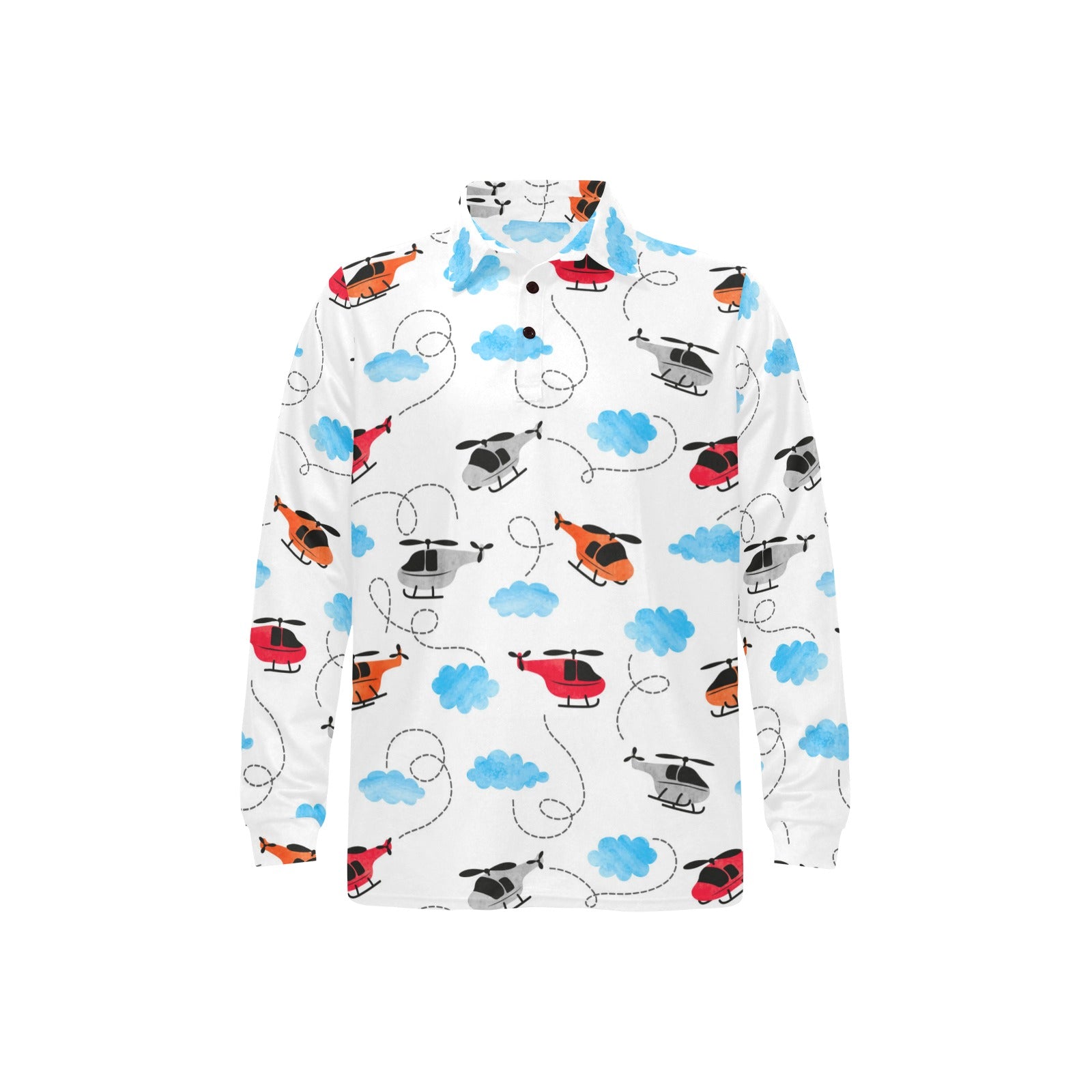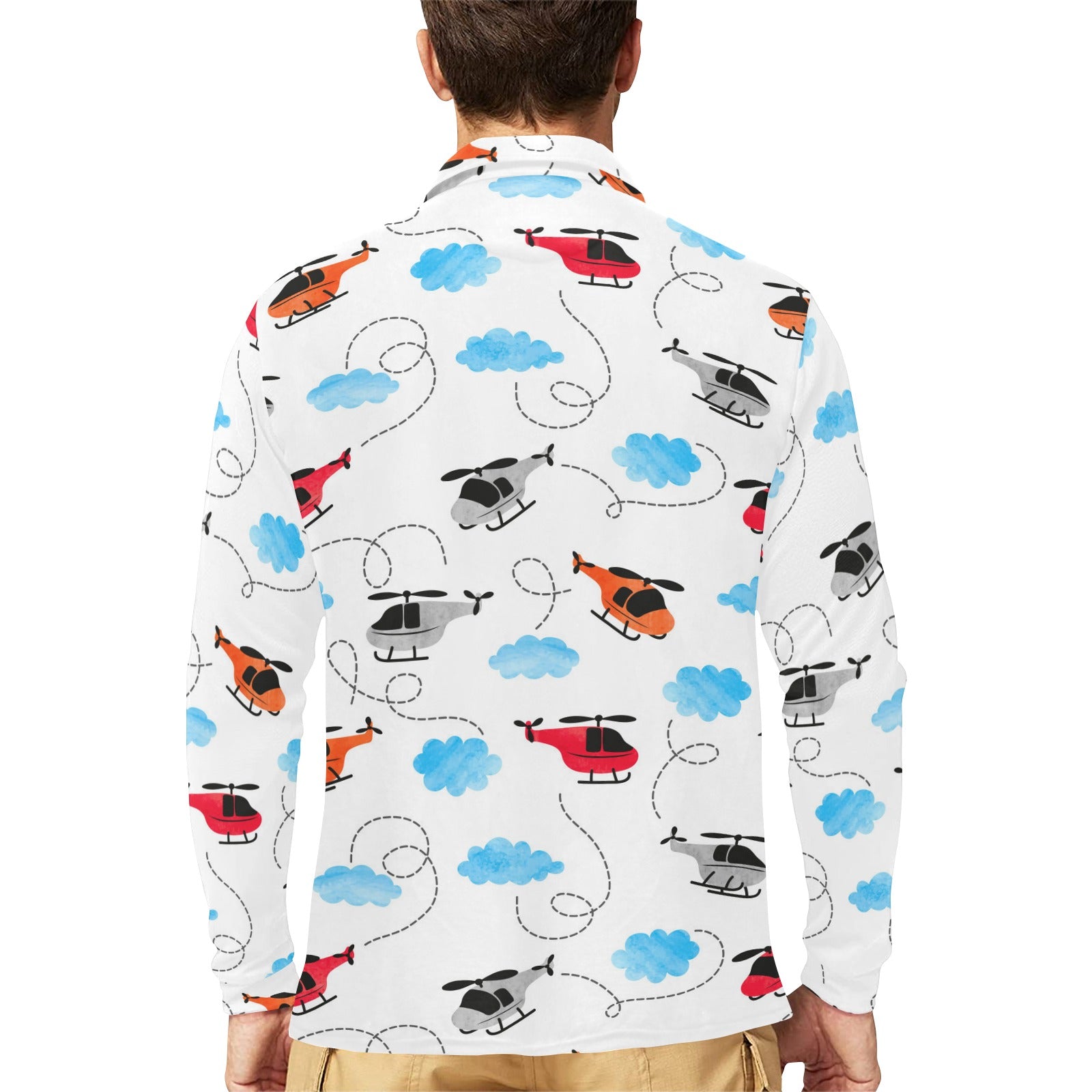 Watercolor helicopter cloud pattern Men's Long Sleeve Polo Shirt