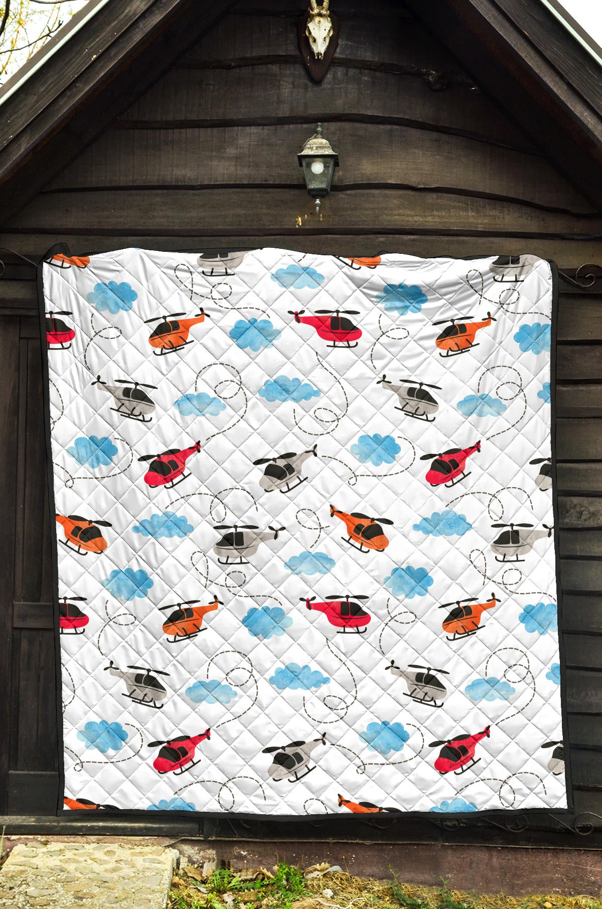 Watercolor Helicopter Cloud Pattern Premium Quilt is a uniqued design and limited item. It made to order, hand printed, and sewn with love in our factory.