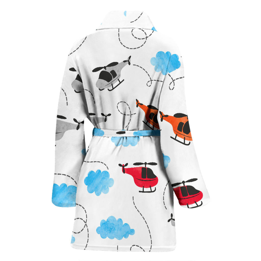 Watercolor Helicopter Cloud Pattern Women'S Bathrobe