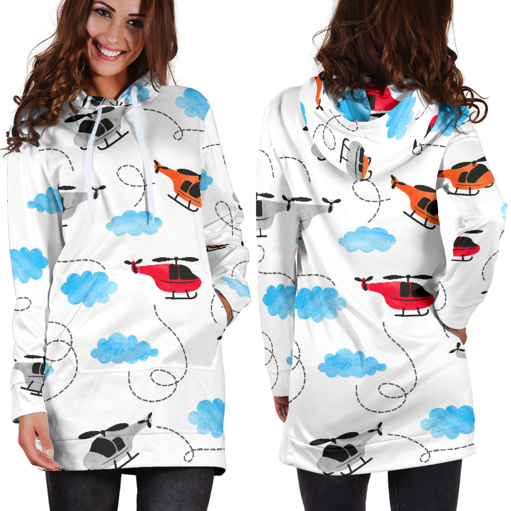Watercolor Helicopter Cloud Pattern Women'S Hoodie Dress