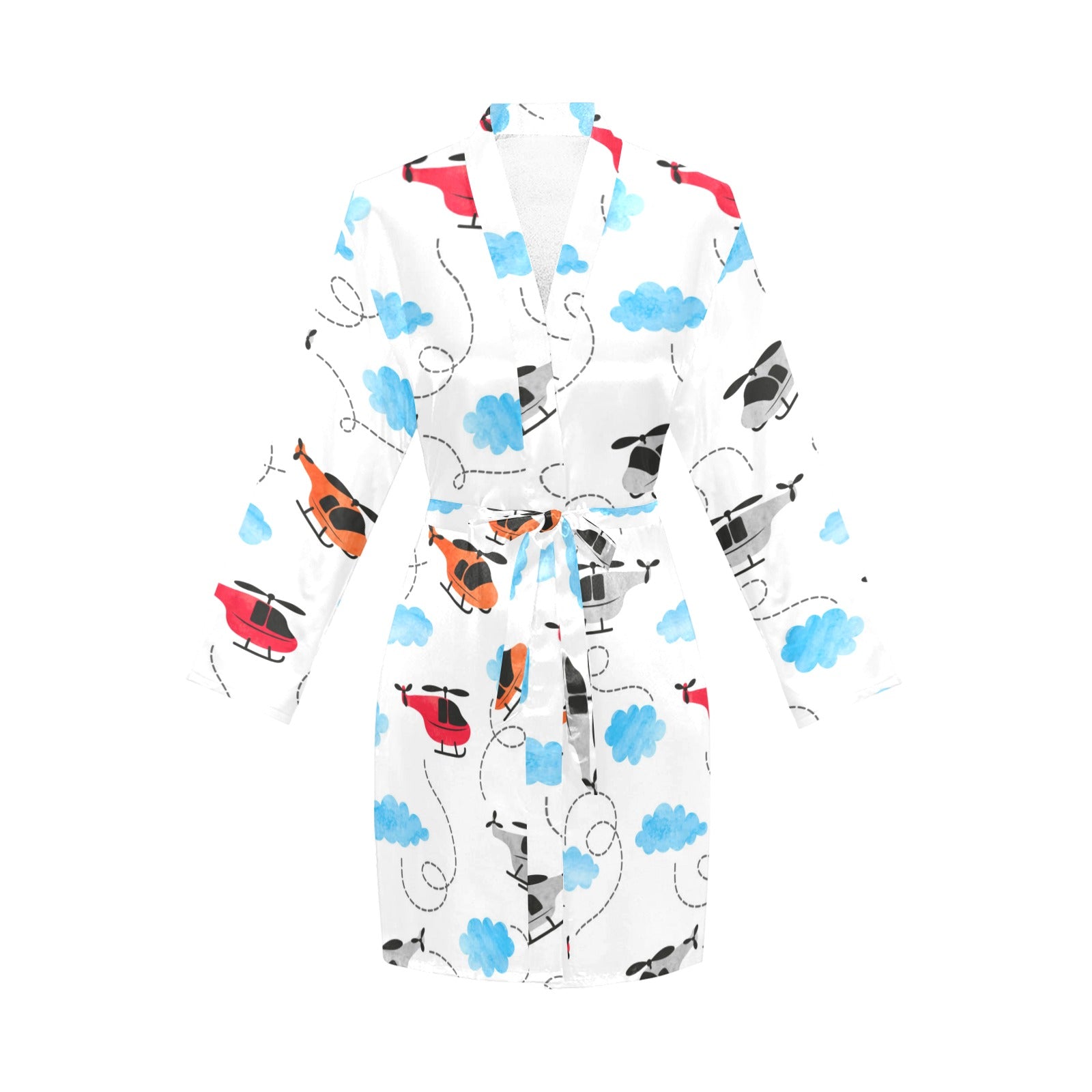 Watercolor helicopter cloud pattern Women's Long Sleeve Belted Night Robe