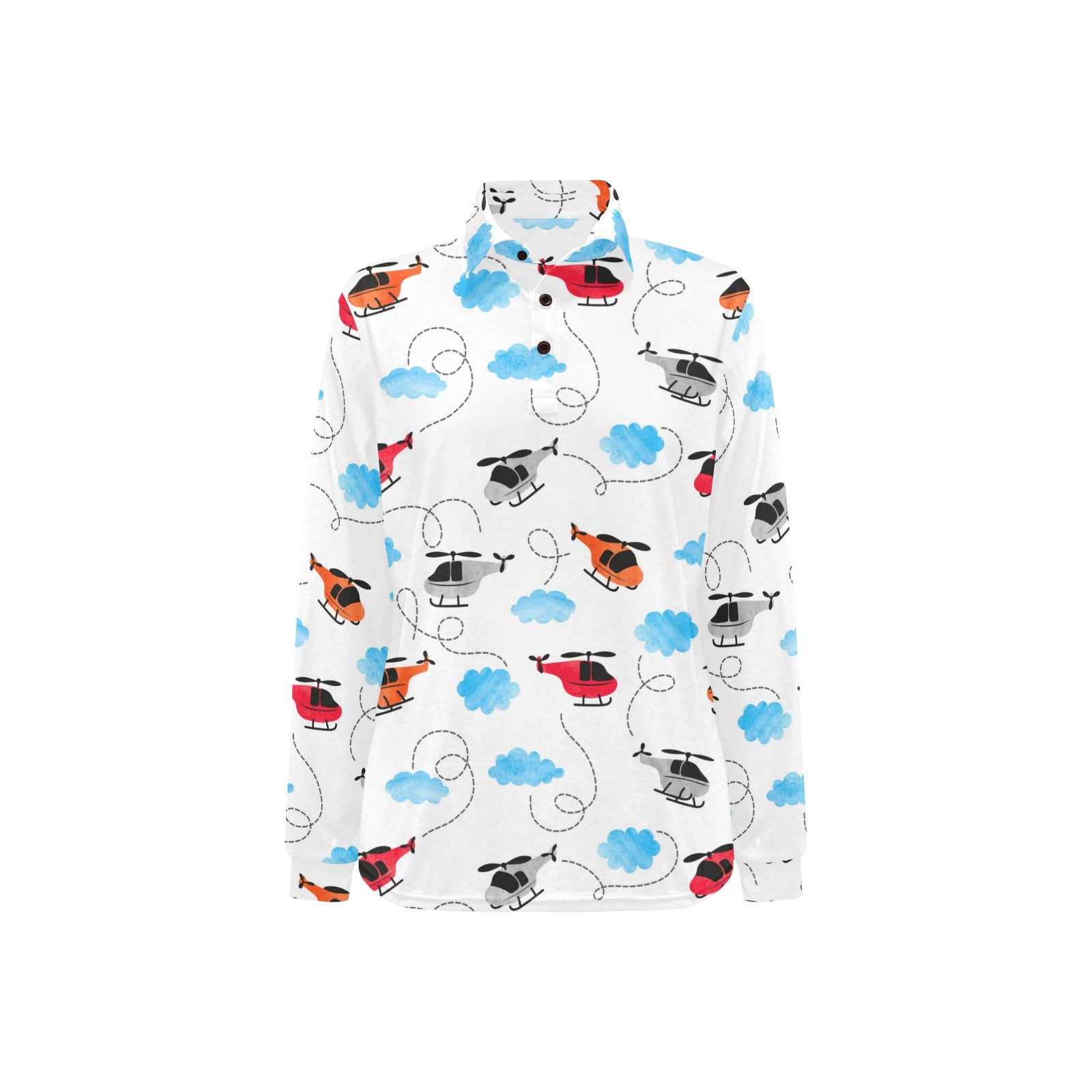 Watercolor helicopter cloud pattern Women's Long Sleeve Polo Shirt