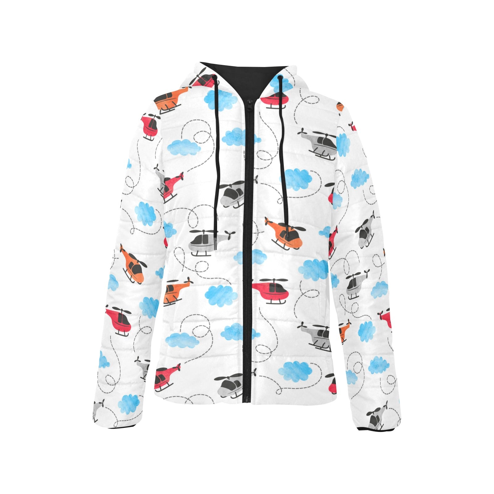 Watercolor helicopter cloud pattern Women's Padded Hooded Jacket