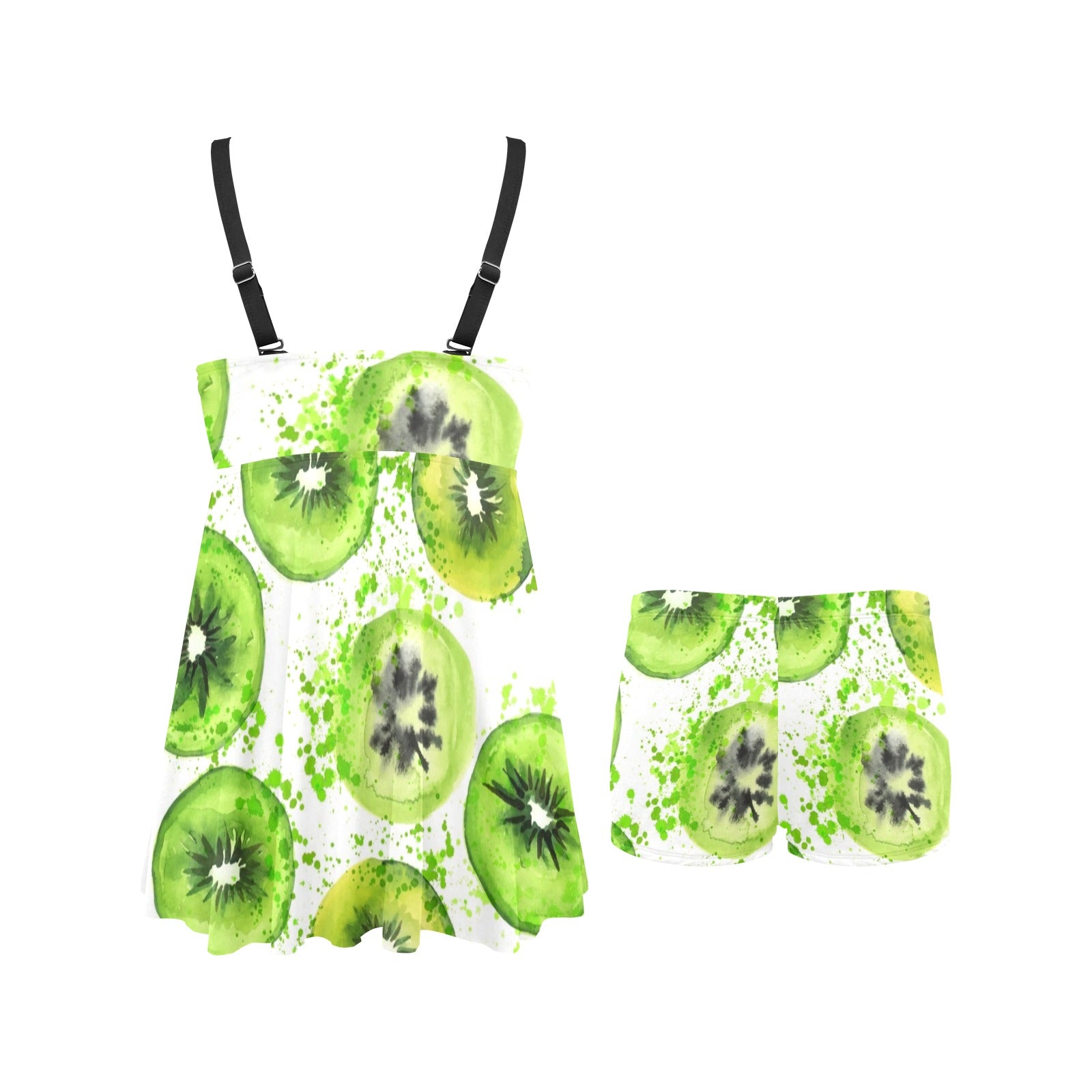 Watercolor kiwi pattern Chest Sexy Pleated Two Piece Swim Dress