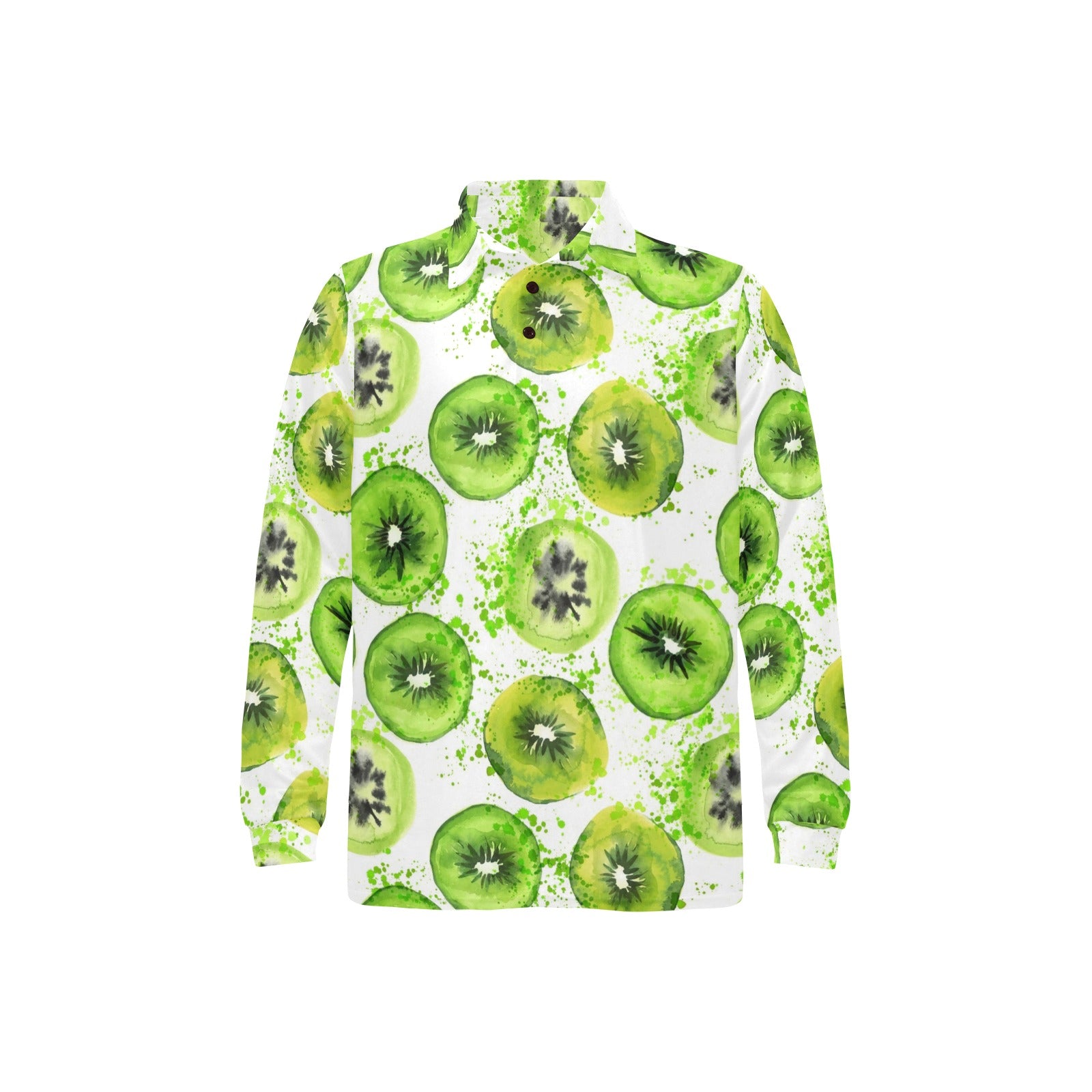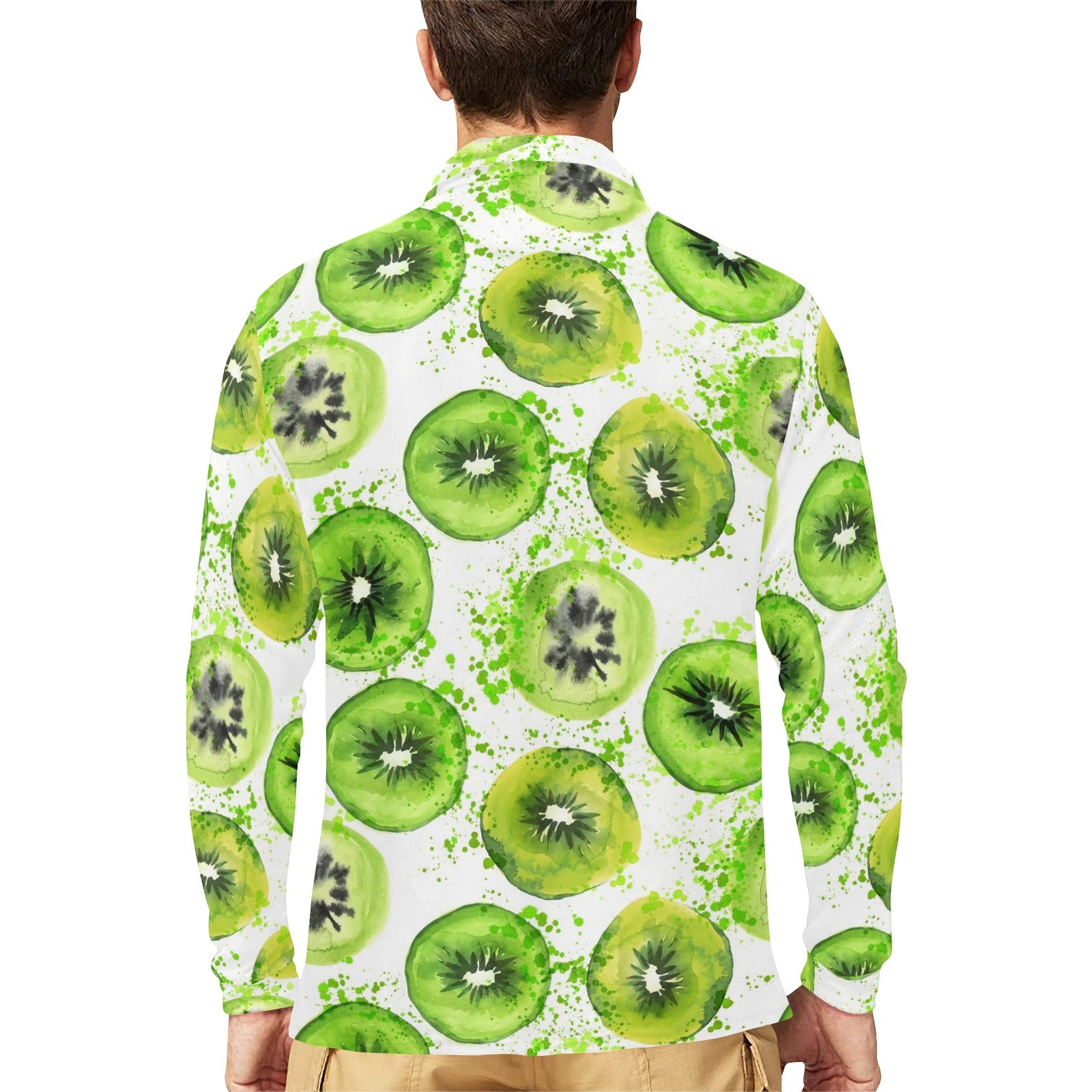 Watercolor kiwi pattern Men's Long Sleeve Polo Shirt