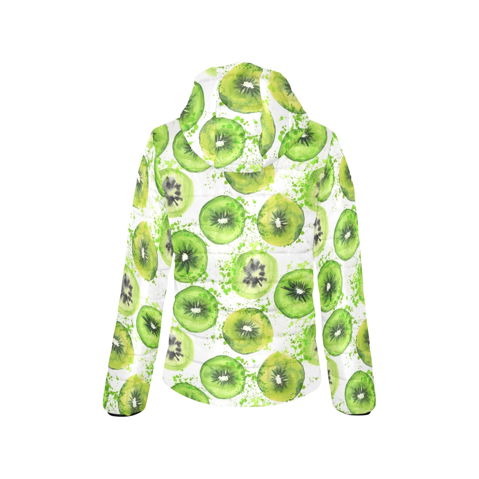 Watercolor kiwi pattern Women's Padded Hooded Jacket