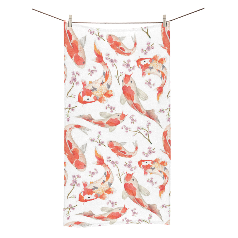 Watercolor Koi Fish Carp Fish pattern Bath Towel