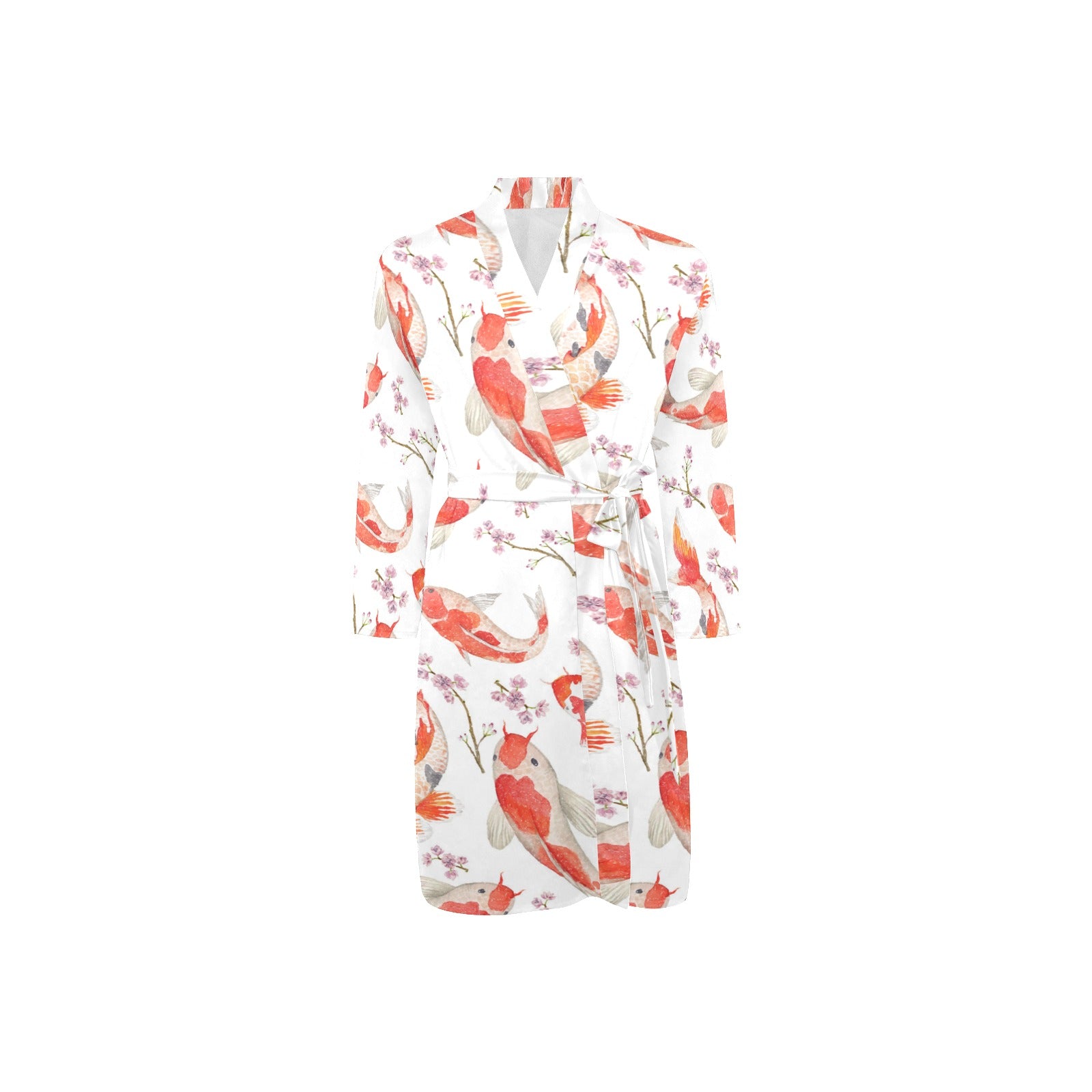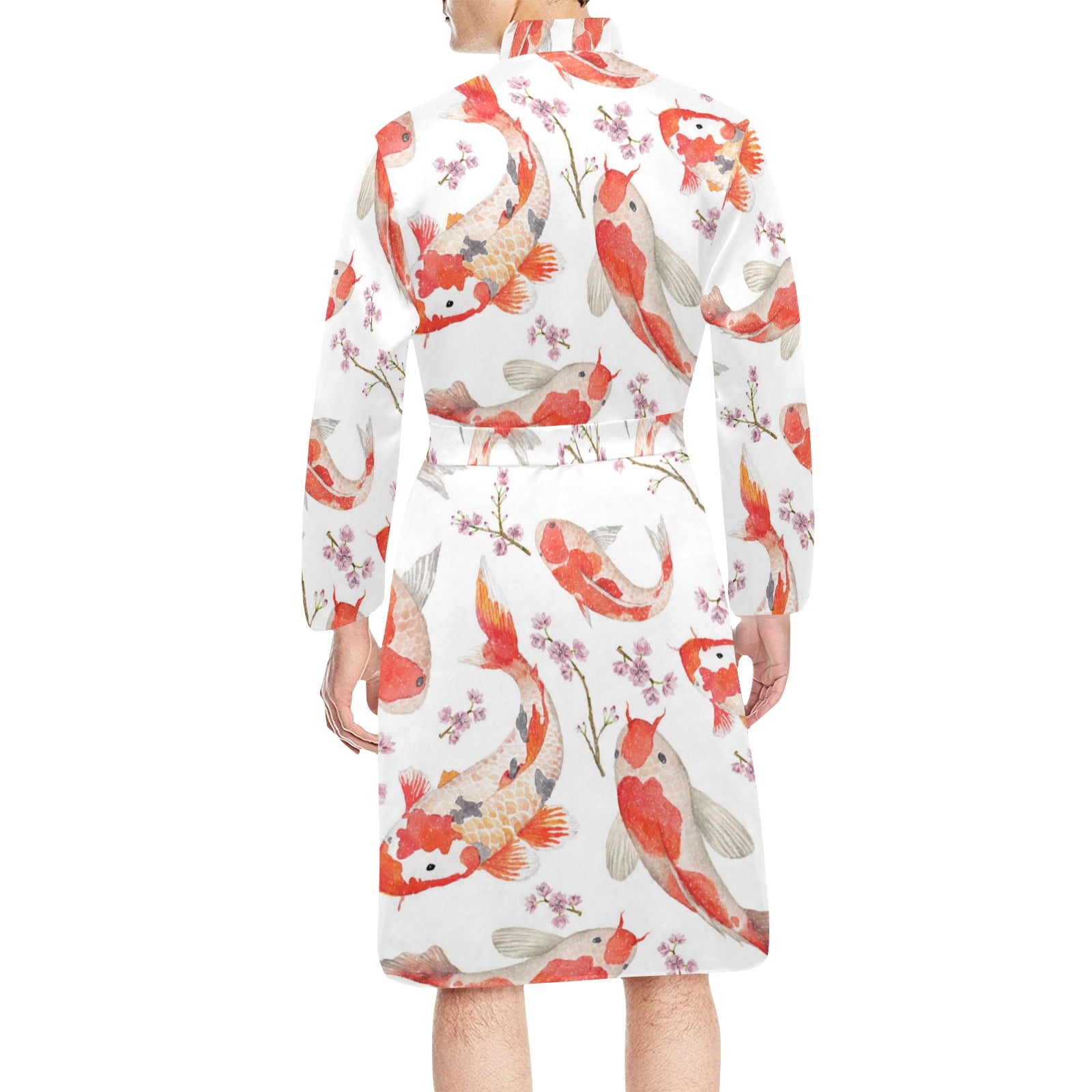 Watercolor Koi Fish Carp Fish pattern Men's Long Sleeve Belted Night Robe