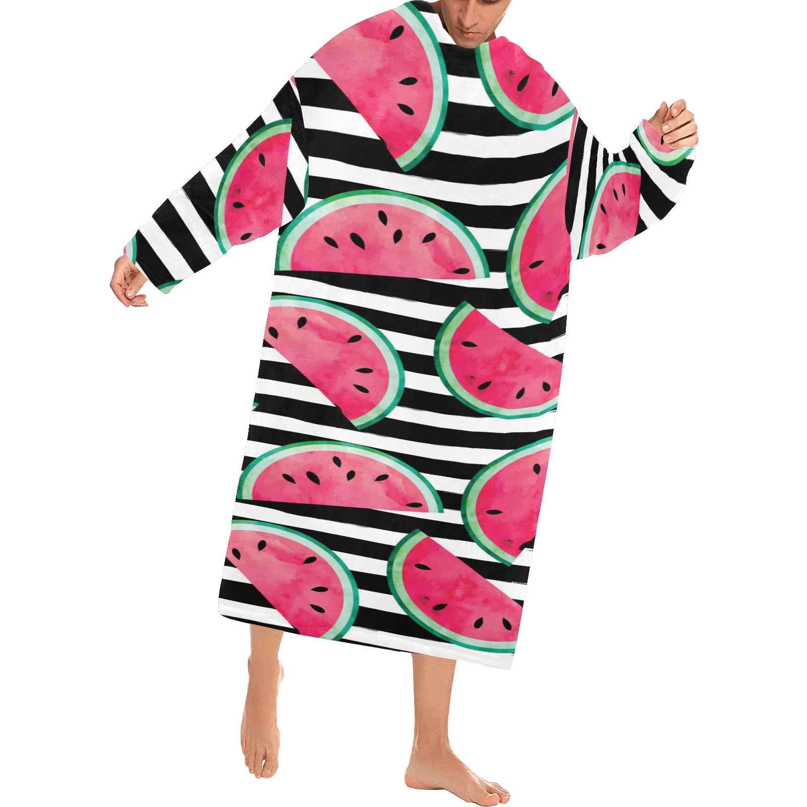 Watercolor paint textured watermelon pieces Blanket Robe with Sleeves