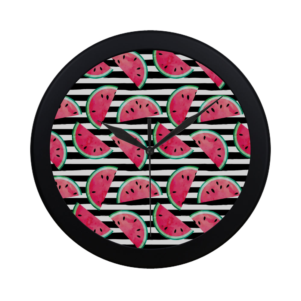 Watercolor paint textured watermelon pieces Elegant Black Wall Clock is a uniqued design and limited item. It made to order, hand printed, and sewn with love in our factory.