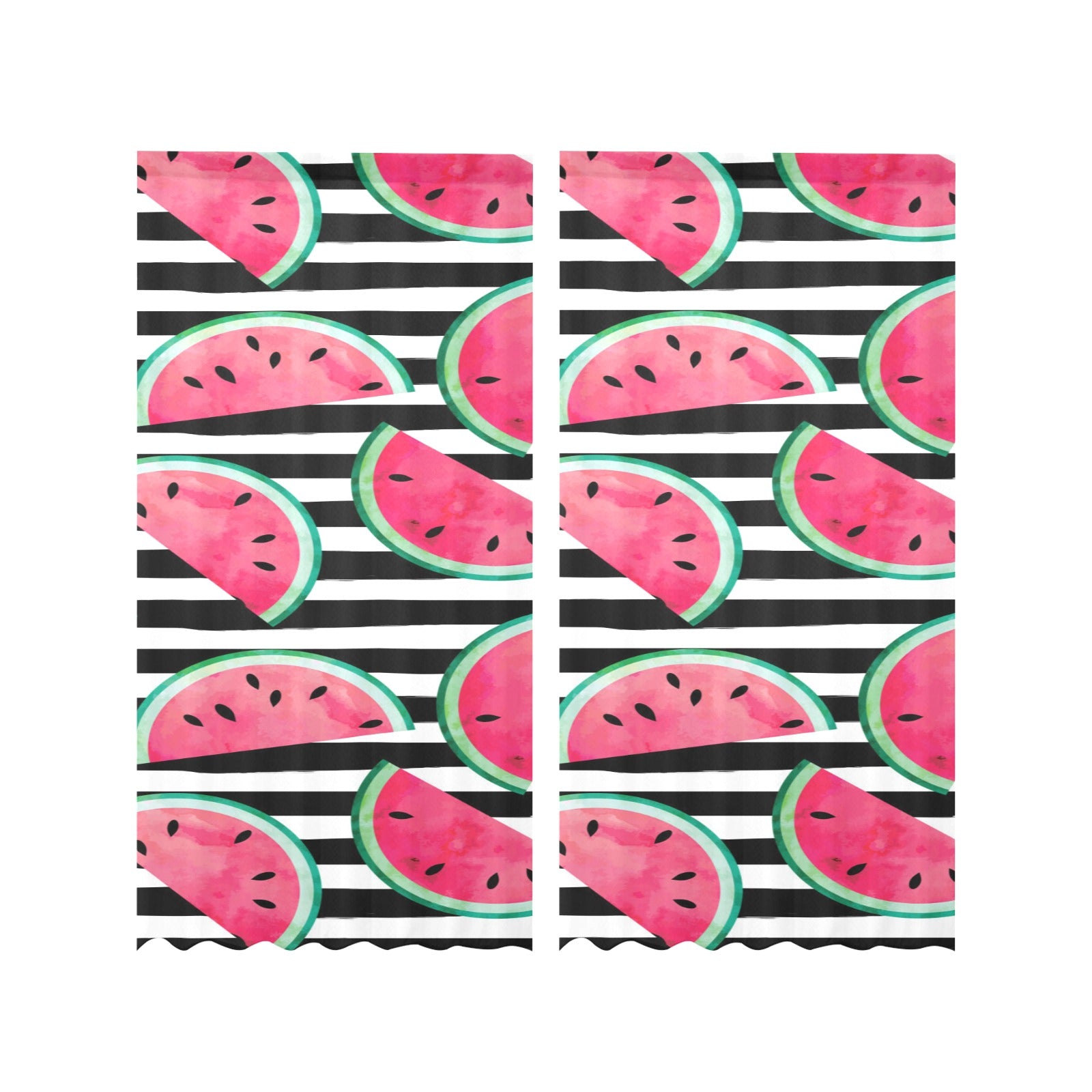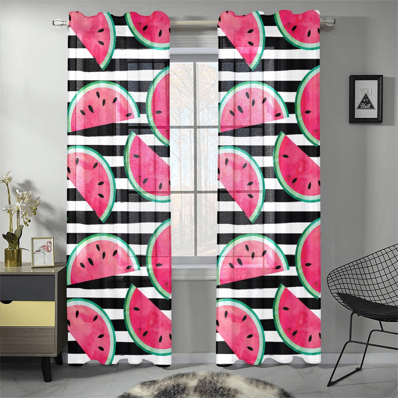 Watercolor paint textured watermelon pieces Gauze Curtain