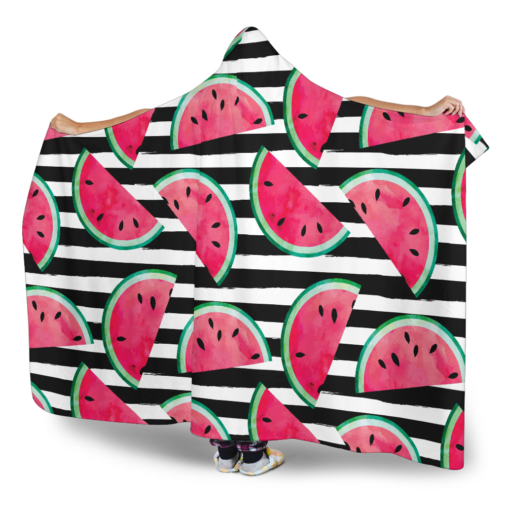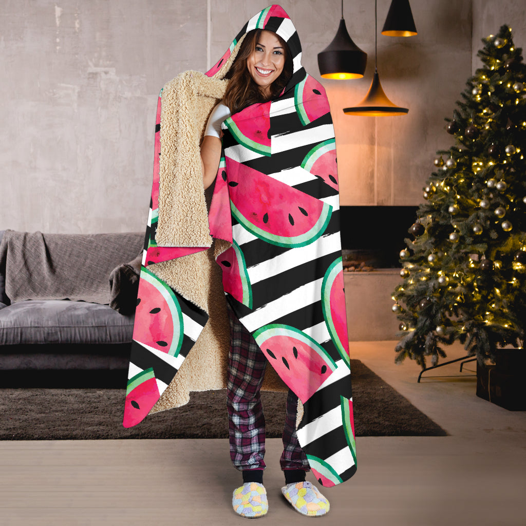 Watercolor paint textured watermelon pieces Hooded Blanket are custom-made-to-order and handcrafted to the highest quality standards.