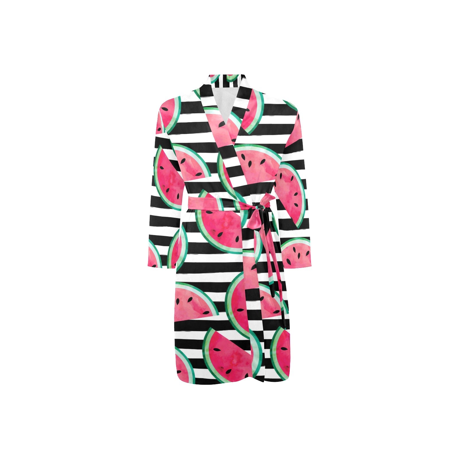 Watercolor paint textured watermelon pieces Men's Long Sleeve Belted Night Robe